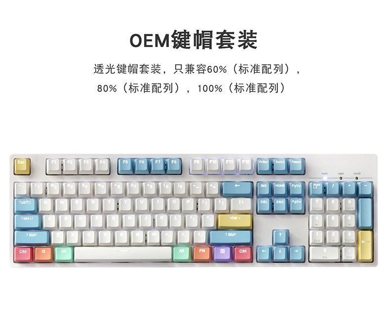 Набор мела Механическая клавиша клавишная клавиша PBT Diolon Light Transmiting Keycap 87mx6.0 8.0 108 Соответствующий стандартный OEM