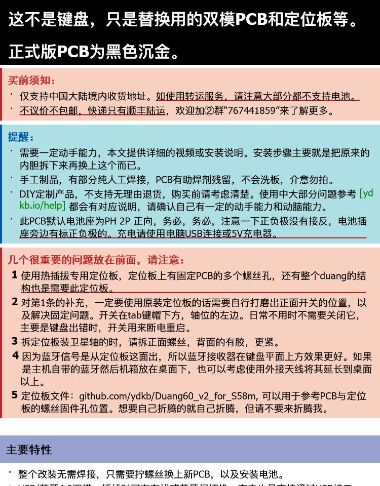 Duang60V2 Настройка механической клавиатуры Hot PCB Hot Plug -in Bluetooth -проводка с двойной линейкой, поддерживает S58M и т. Д.