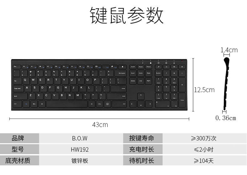 Клавиатура с зарядкой, беззвучный беспроводной комплект, мышка, Гонконг, bluetooth
