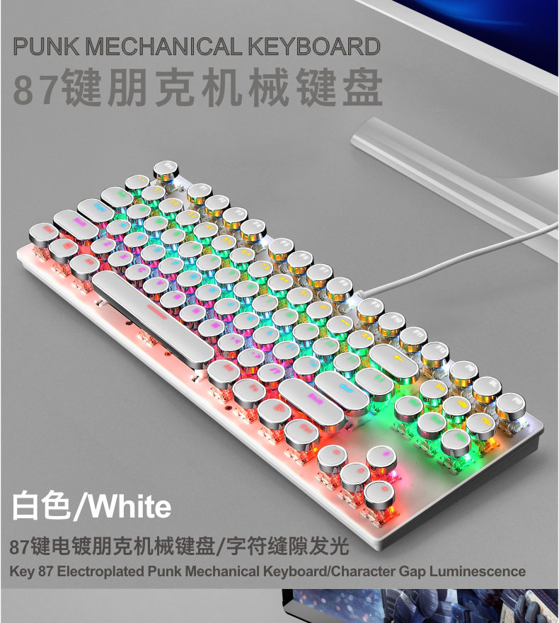 - Белая механическая клавиатура, в стиле панк