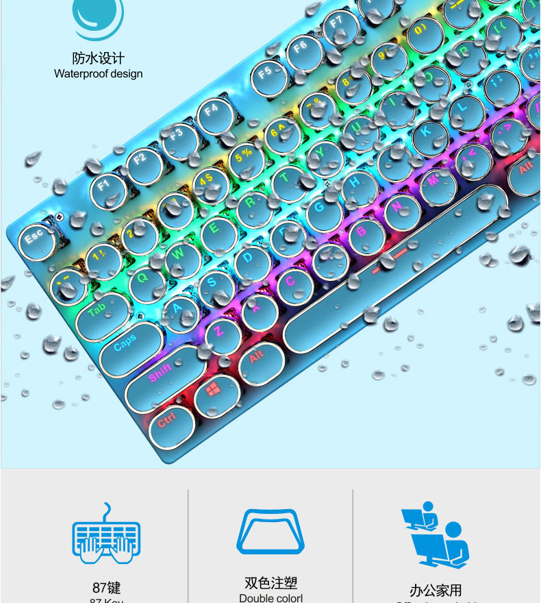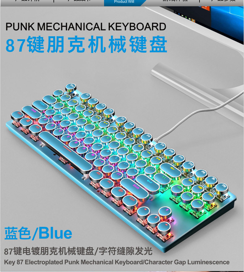 - Синяя механическая клавиатура, в стиле панк