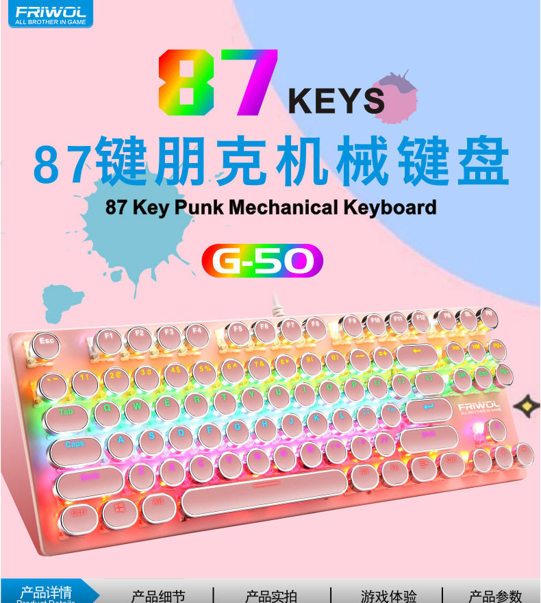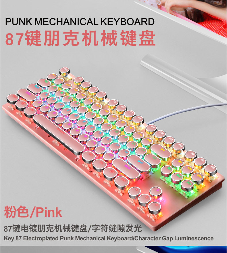 - Розовый 87-ключевая механическая клавиатура