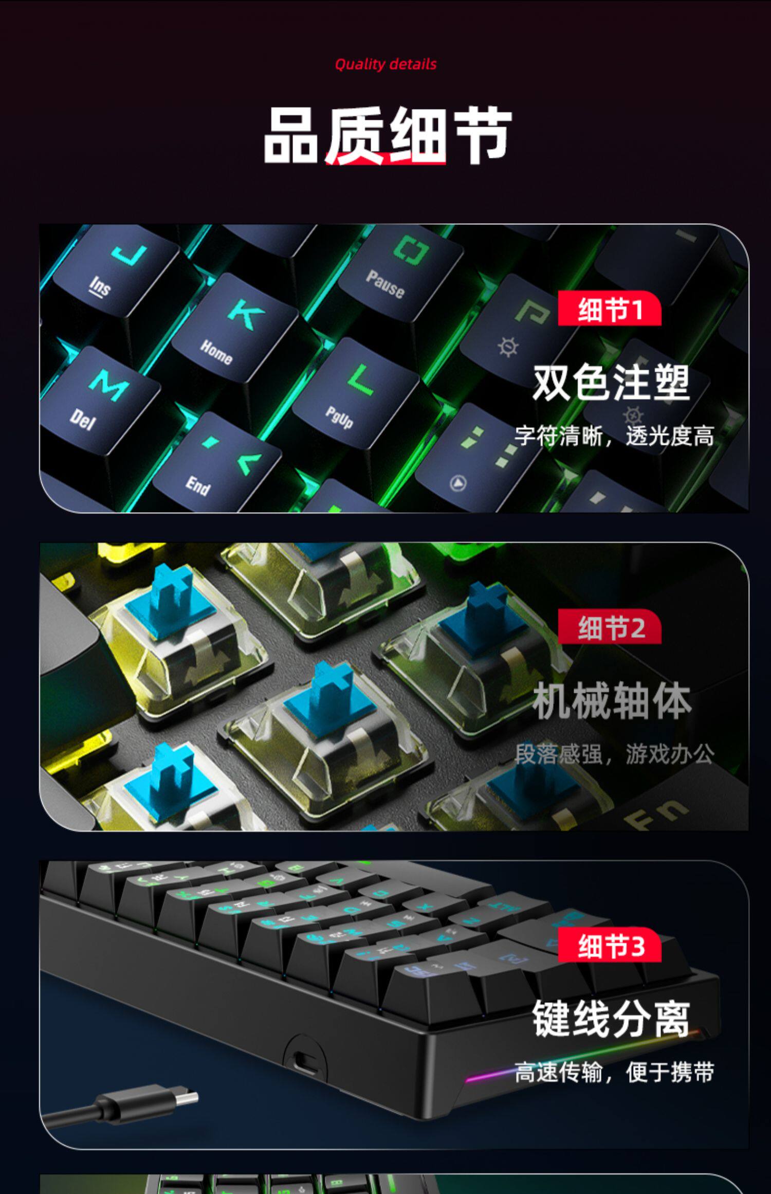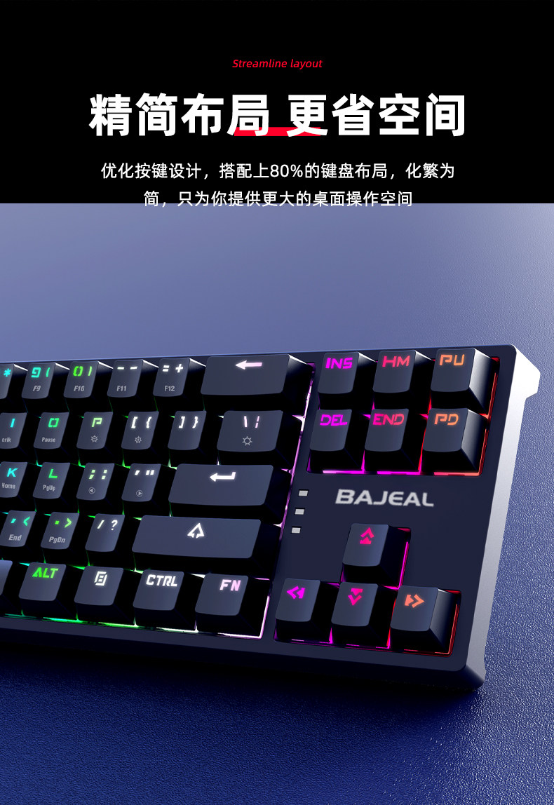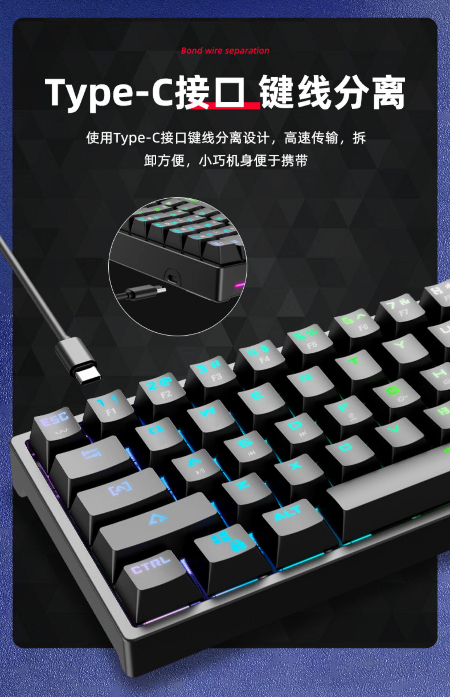Bajeal K71 Ключ E-Sports Клавиатура подключаемые ключи синего вала Type-C отделяет новые модели с обеих сторон