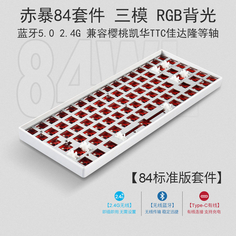 Красный шторм 84 -Клеи Механический набор клавиатуры Индивидуальная трехмода RGB BARTLIGHT Bluetooth Hot Вставка игра игра