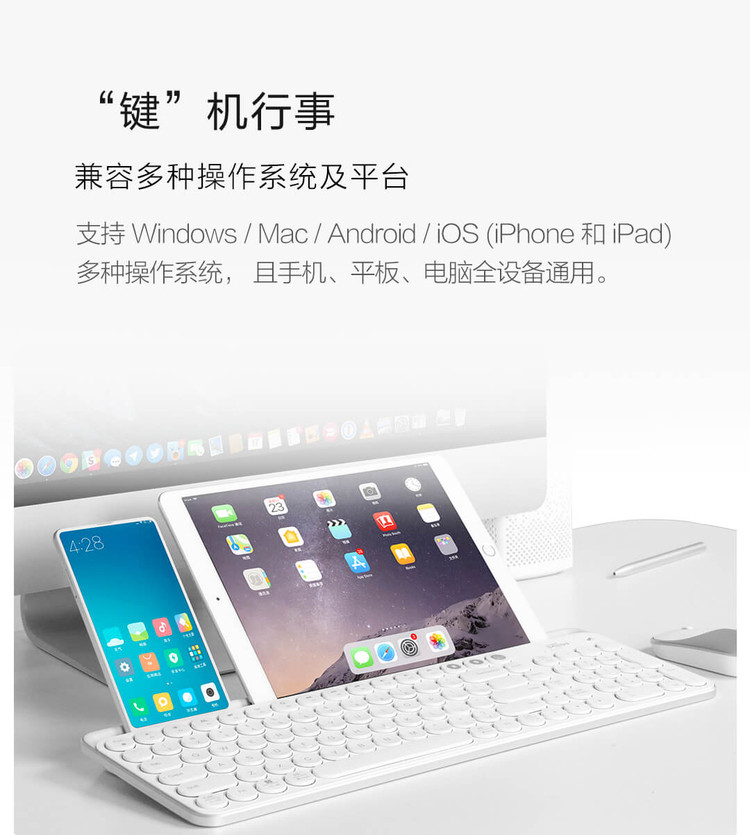 - Rice Wireless Bluetooth Double Model Keyboard White