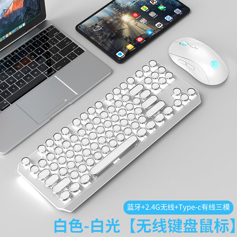 Механическая клавиатура с зеленой осью для девочек, красивая пишущая машинка в стиле ретро, трехрежимная офисная игра Bluetooth с 87 клавишами в стиле стимпанк