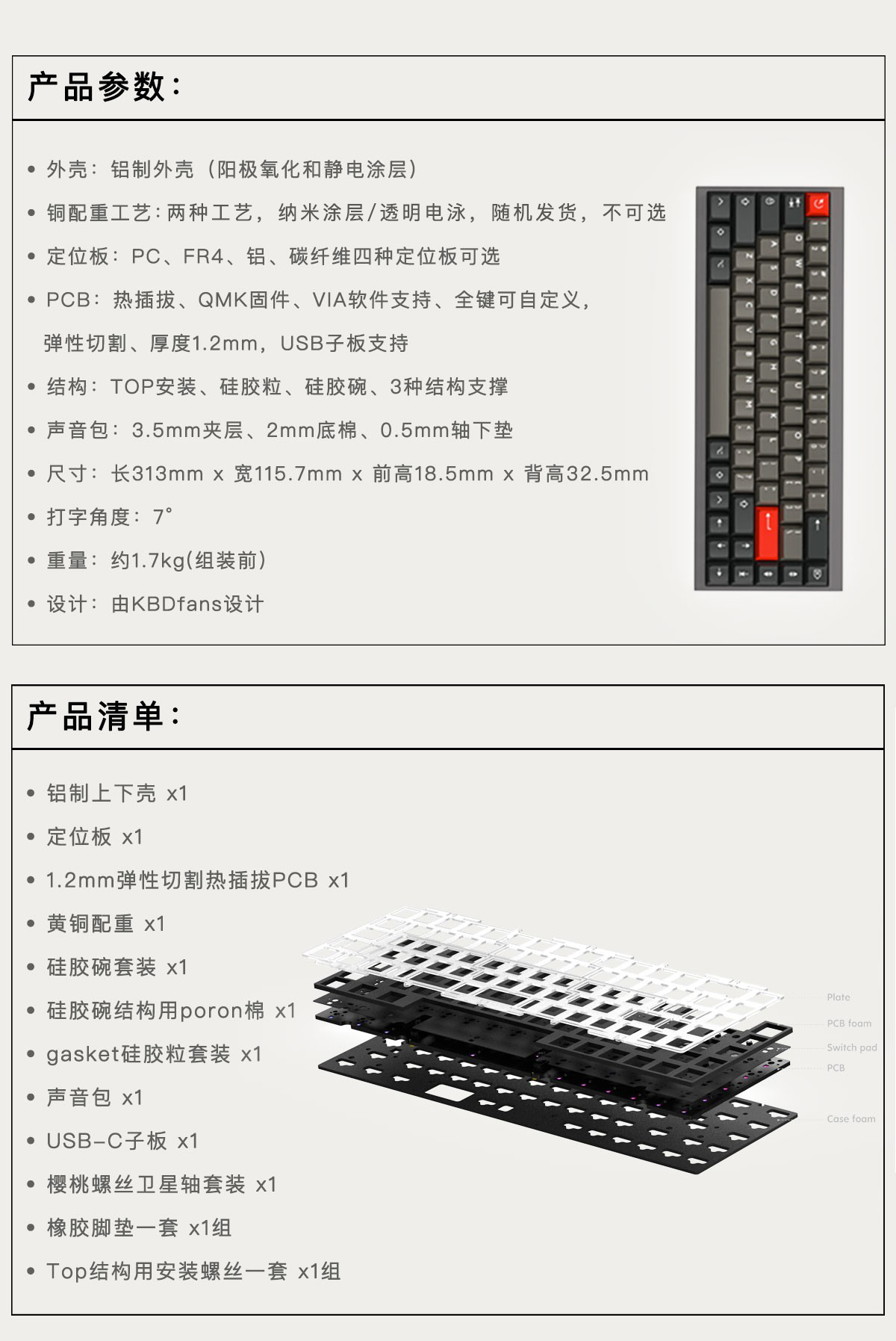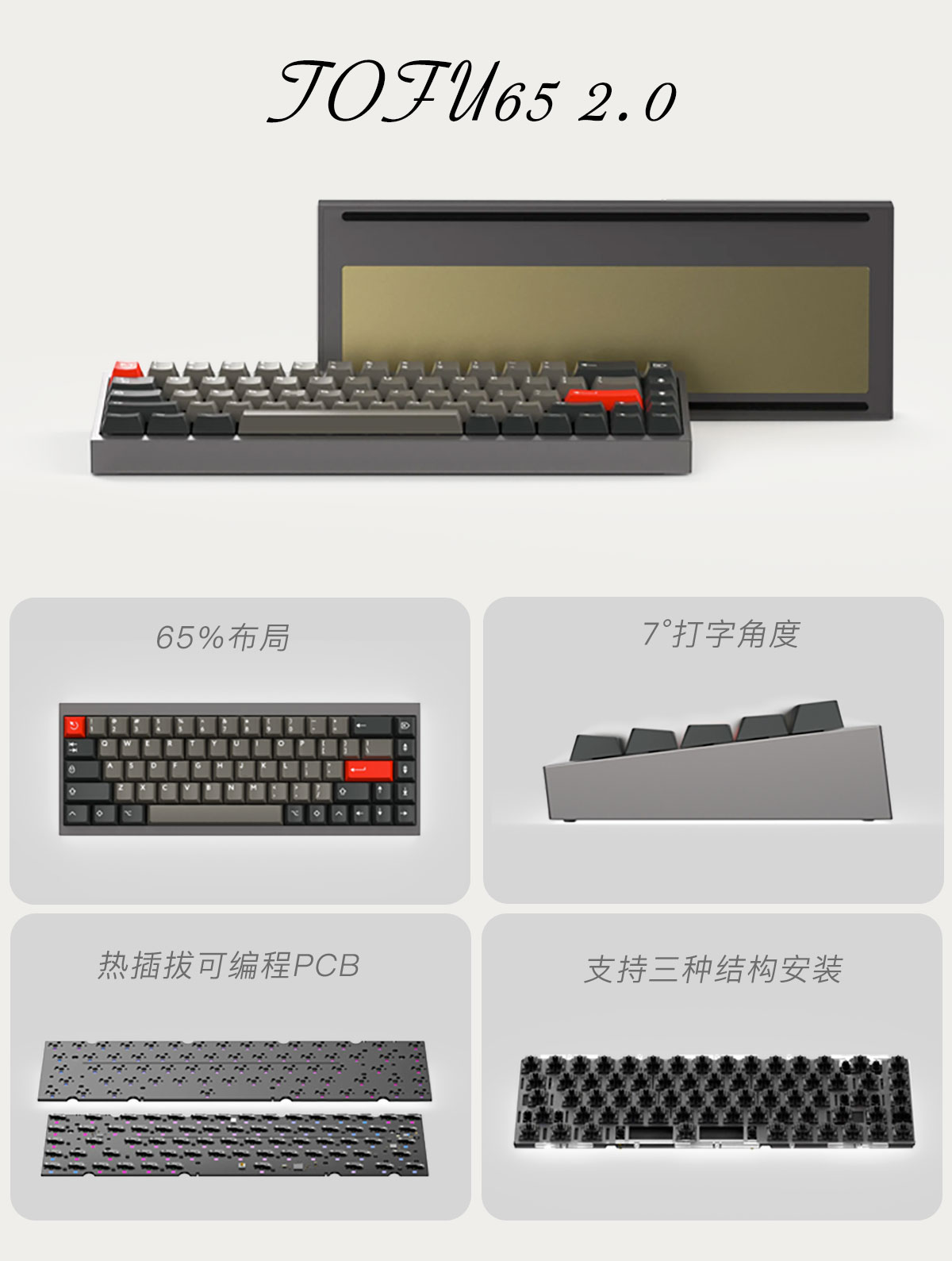 KBDfans Индивидуальная механическая клавиатура TOFU65 2.0 Комплект Прокладка Алюминиевое покрытие
