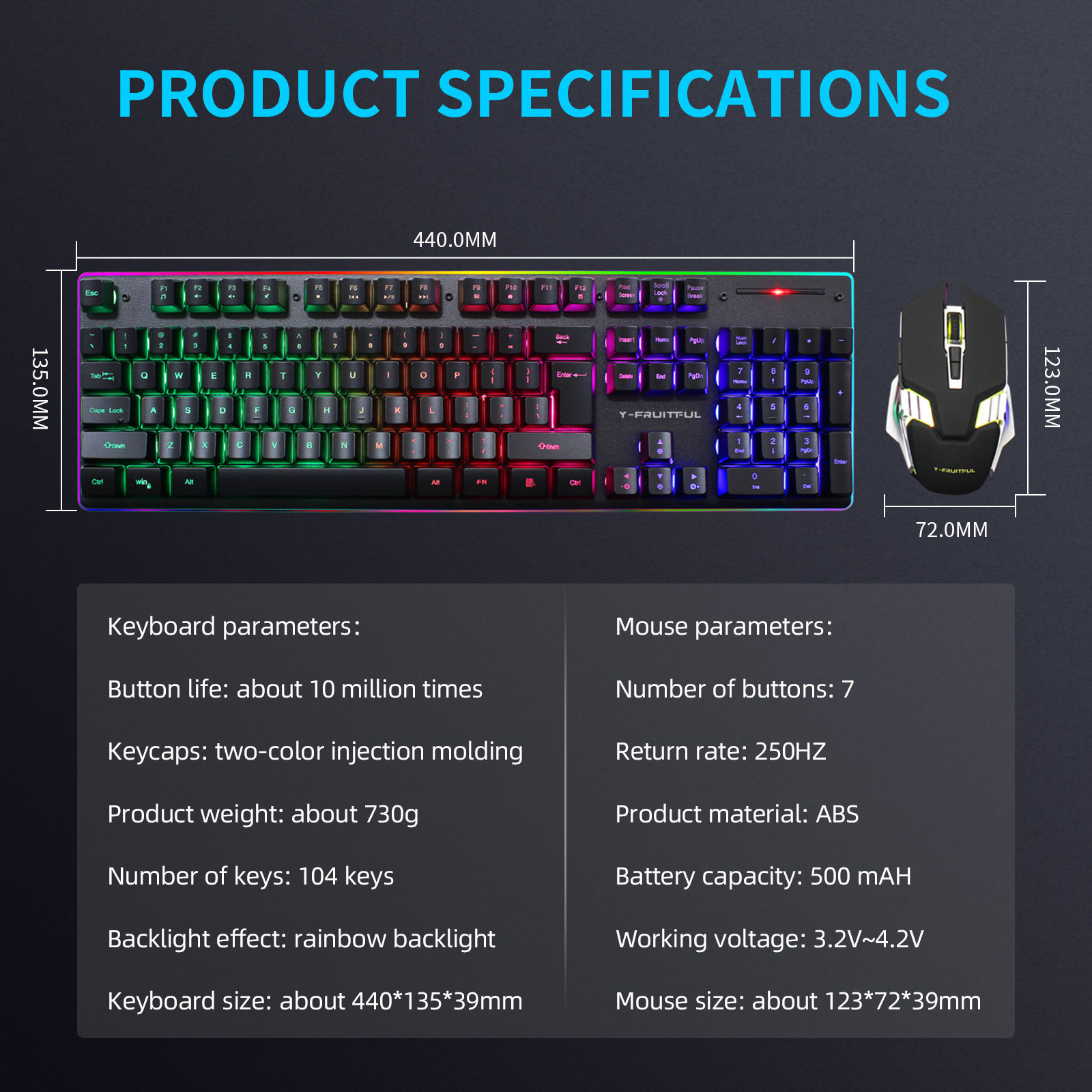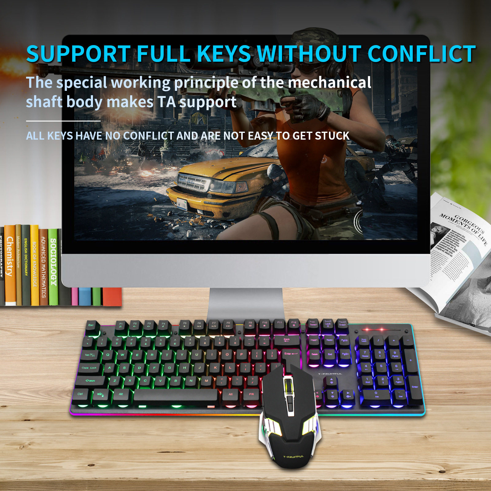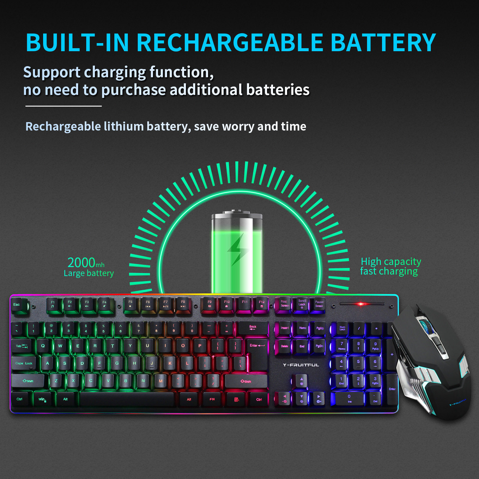 2,4G Перезаряжаемая беспроводная игровая клавиатура и клавиатура мыши RGB