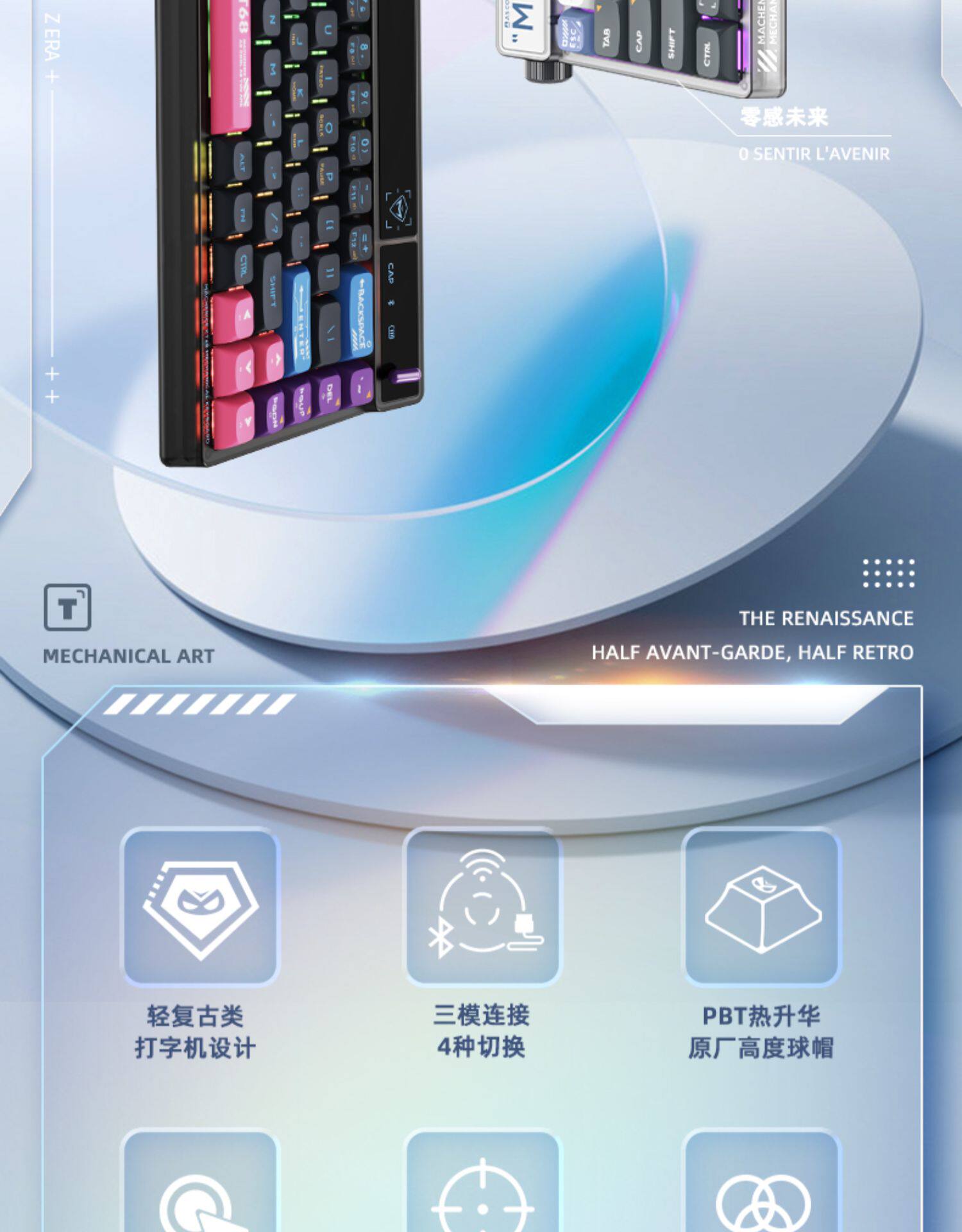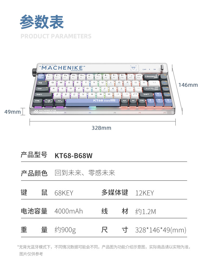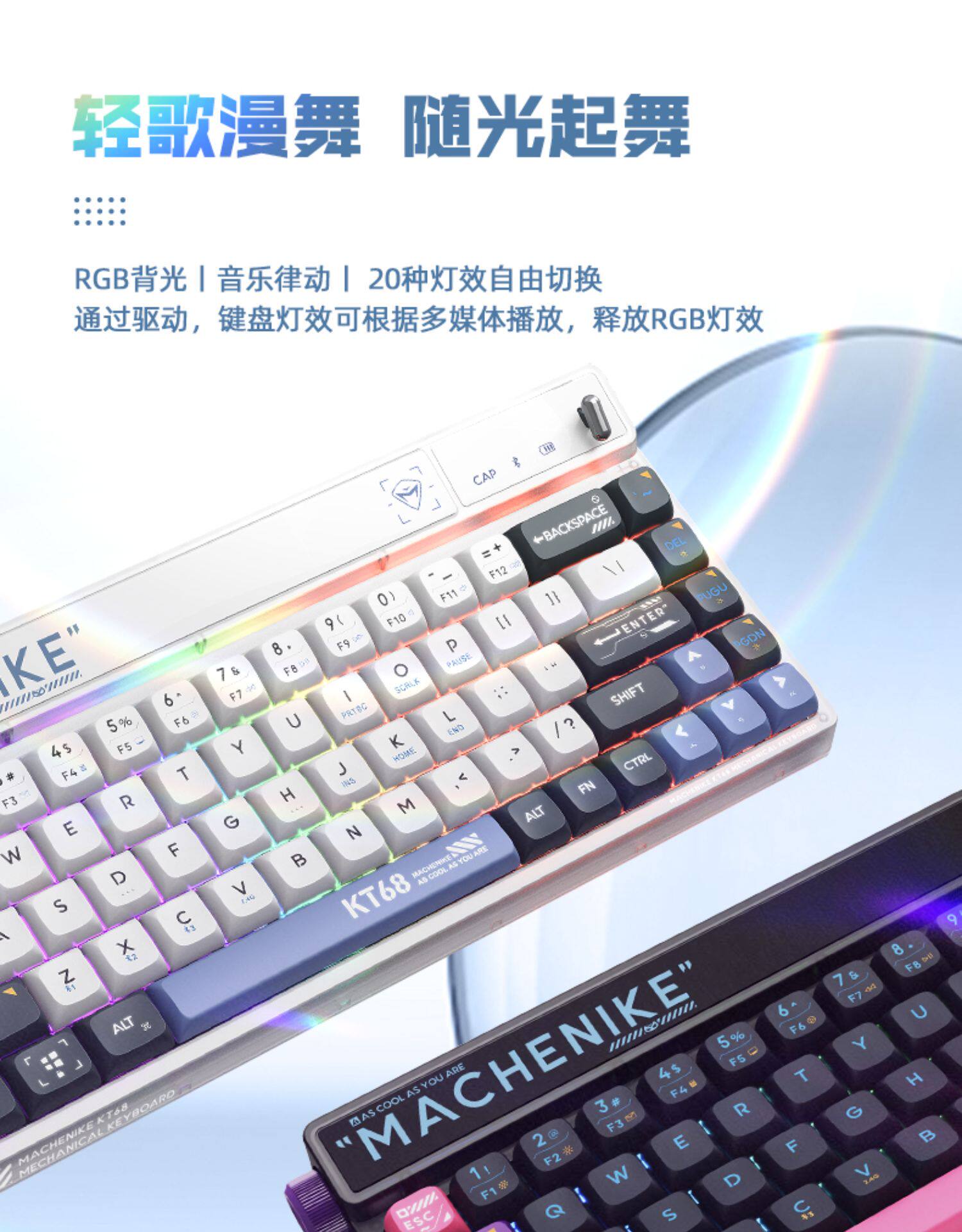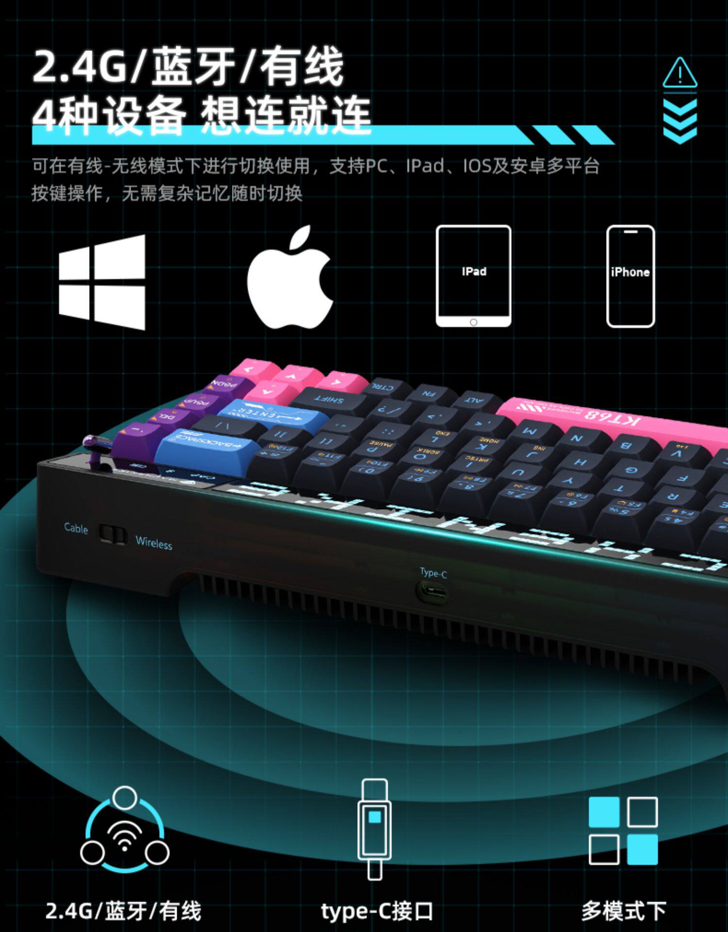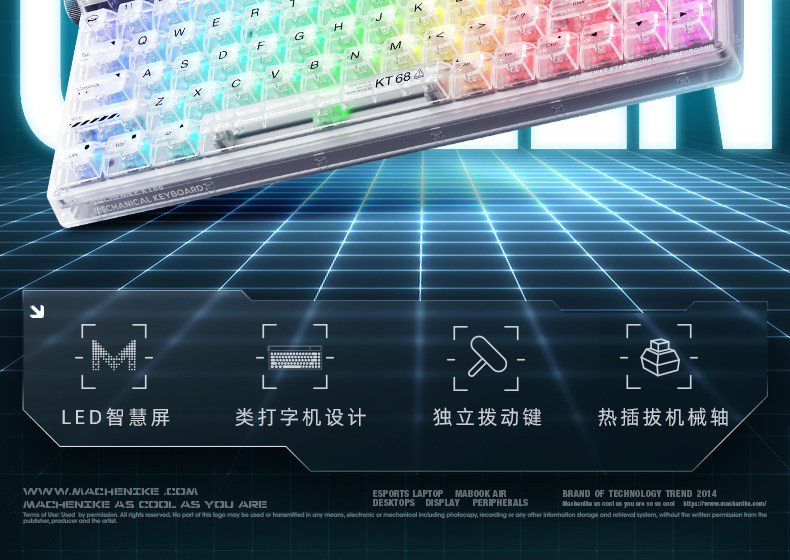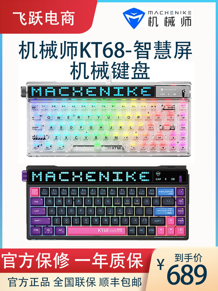 Механический умный экран kt68 Ретро -механическая клавиатура беспроводной блюэтут Трехмодная тепловая заглушка -out ttc