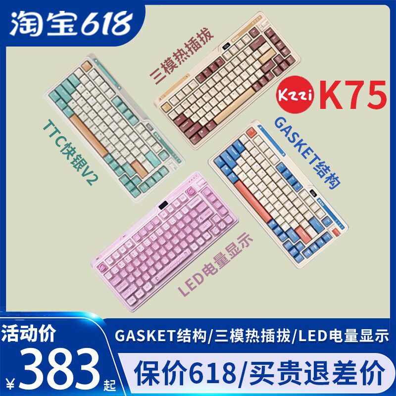 Kzzi kezhi k75 беспроводная трехмодовая закупорка прокладка ручка макро Rgb красочный золотой порошок быстрое серебро механическая клавиатура