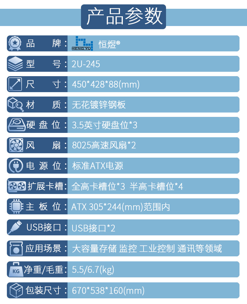 Hengyu 2U-245F-тип стойки промышленное управление Коротким корпусом 45 см в глубине ATX Уровень энергоснабжения