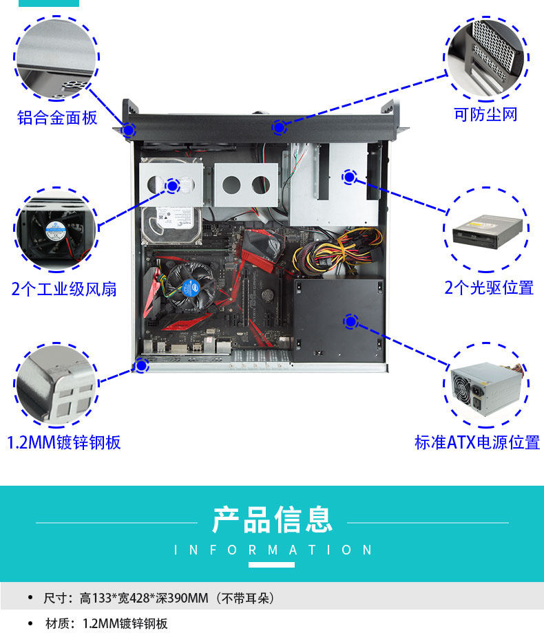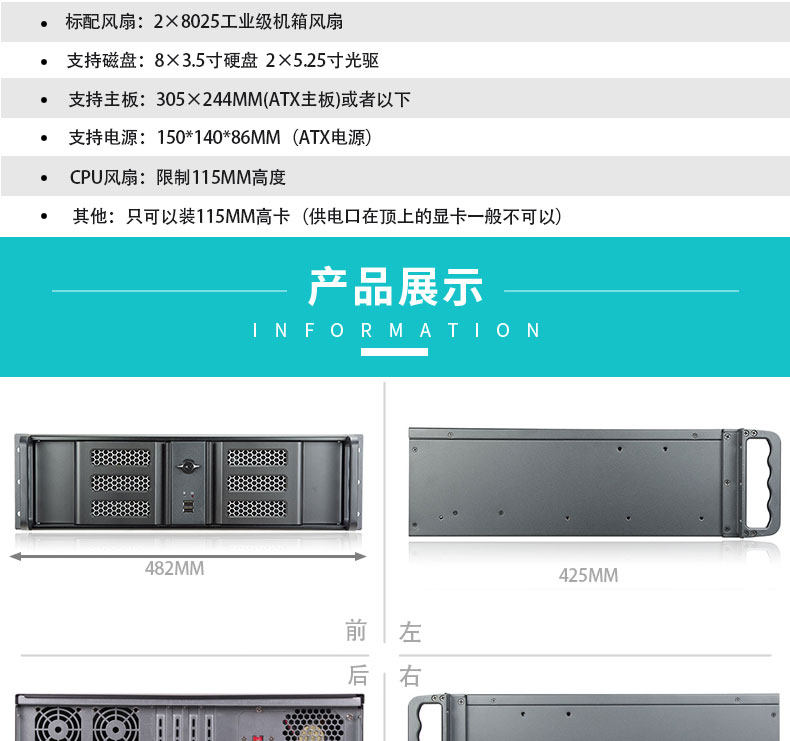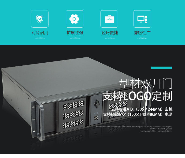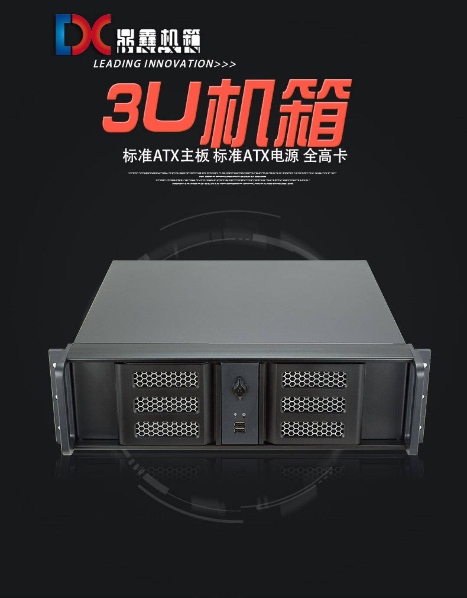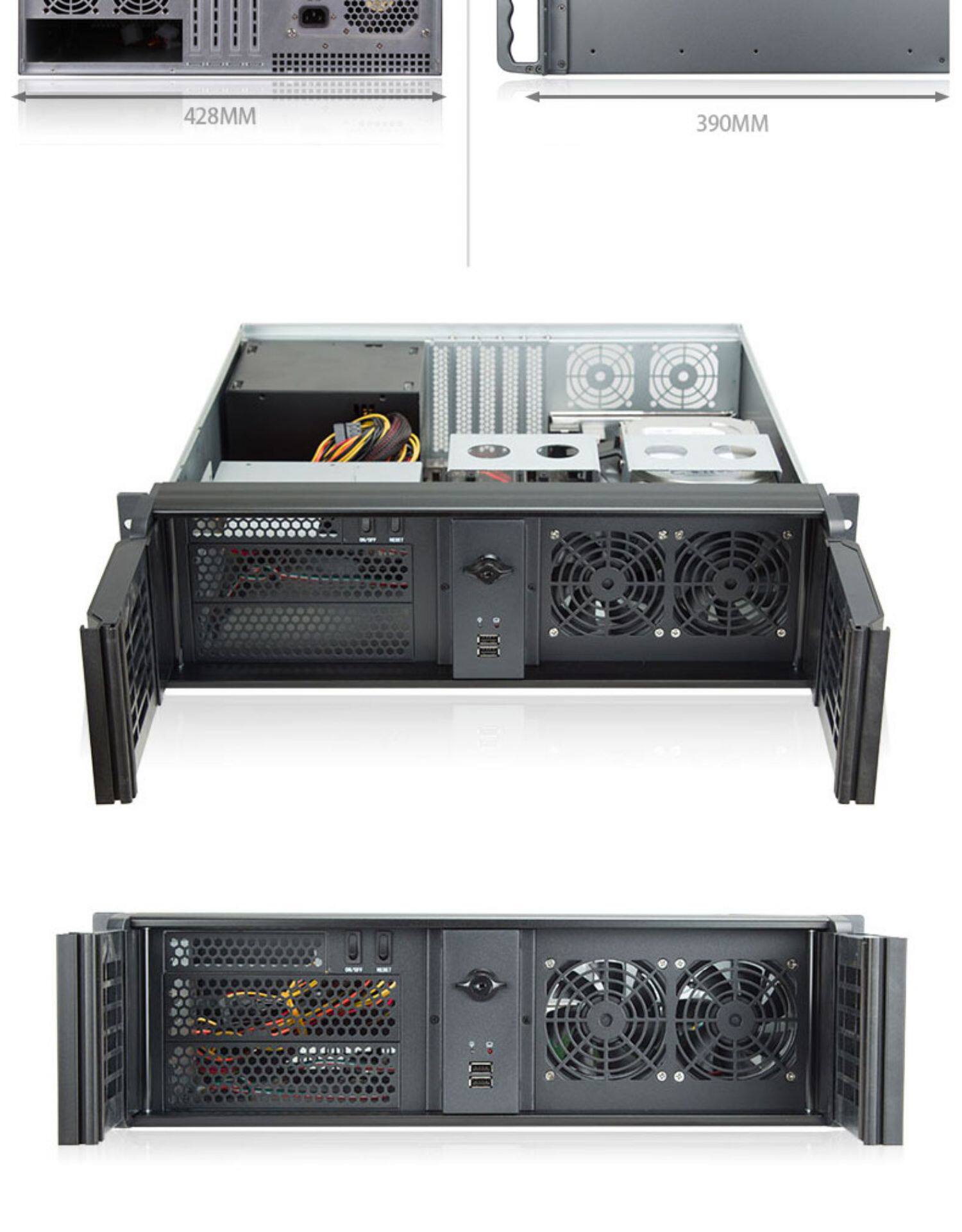 3U Шасси 390 мм панель алюминиевого сплава двойной открытие дверной дверь Стандарт поддержки ATX Большая материнская плата Большой питания полная карта