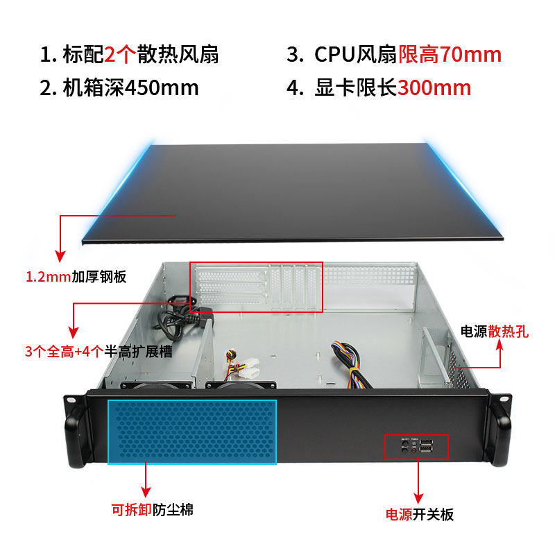 2U промышленного управления корпусом 450 Глубокая графическая карта Горизонтальная вставка ATX Motherboard PC