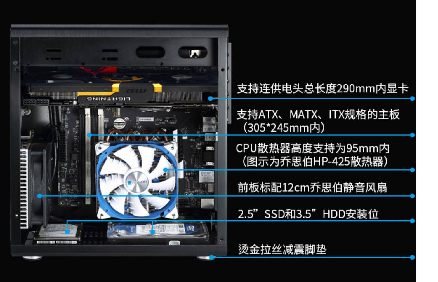 Qiao Sibo Jonsbo Шасси RM2 Алюминиевый сплав Шасси поддерживает материнскую плату ATX ATX Большой источник питания Небольшой объем