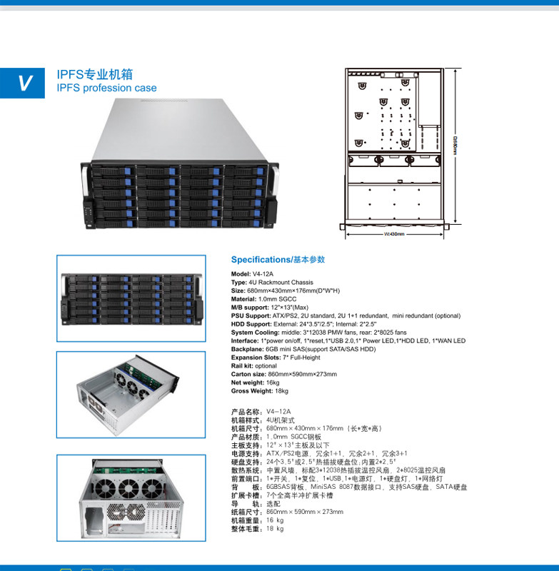 4U24 Дисковый горячий плагин -IN Server Case Lane и V4 Server/Chassis 6/12 ГБ задней панели