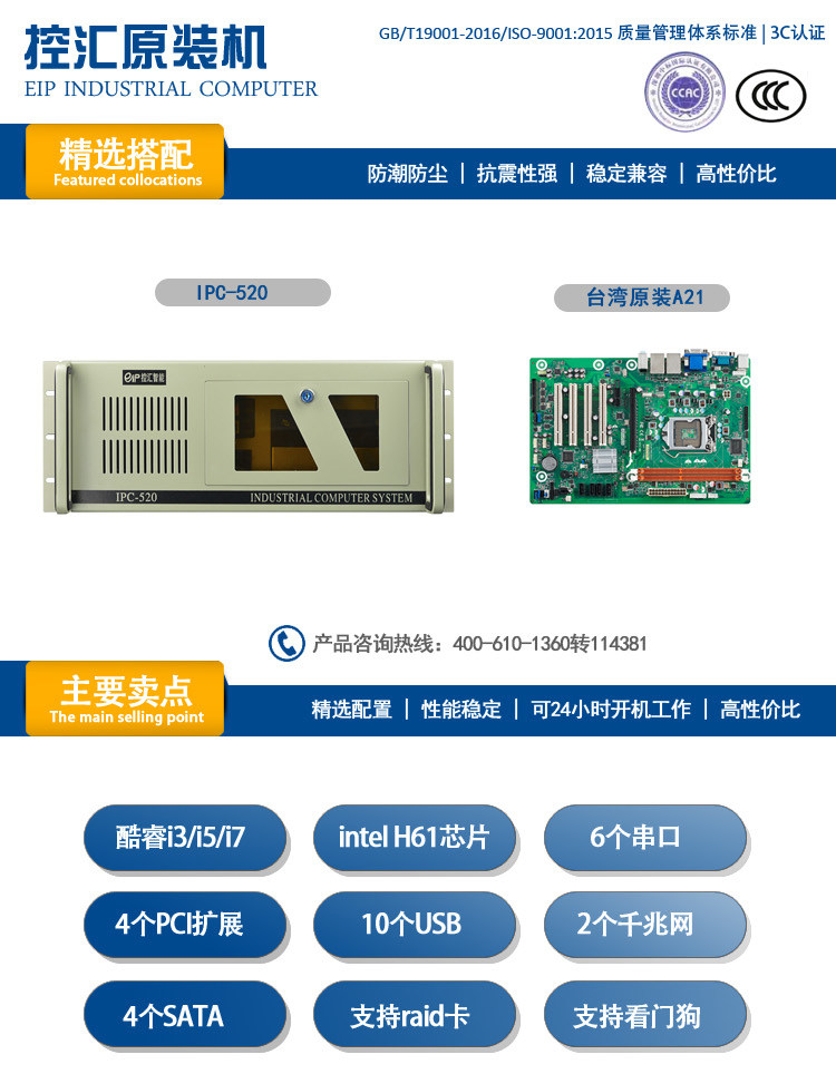 Контроль иностранной валюты (EIP) KH-520 4U Промышленная машина управления Тайвань A21 Оригинальный сервер материнской платы