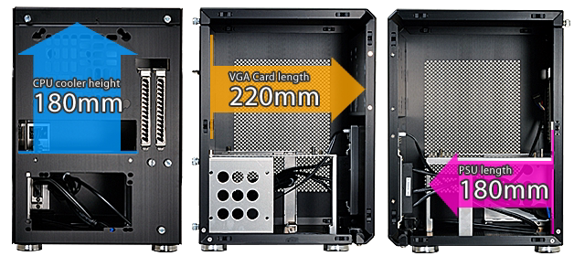 | Установка пространства | VGA Card length: 220mm PSU length: 180mm CPU cooler height:180mm |