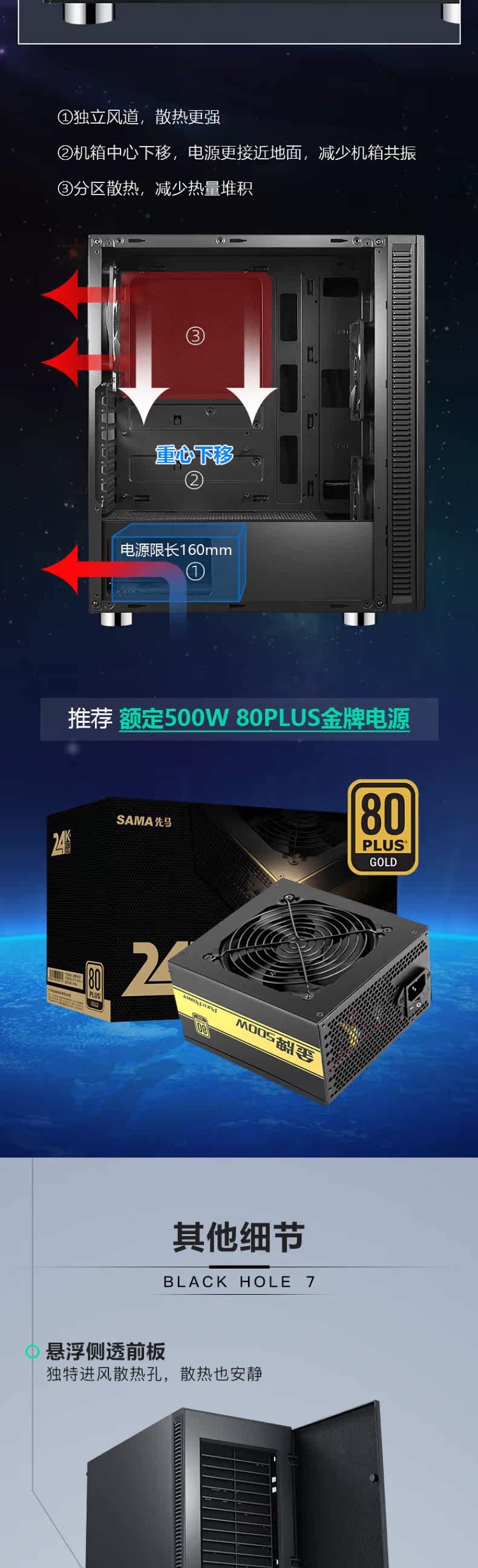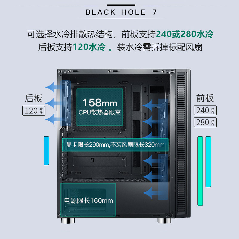 Xianma hei Hole 7 Computer Trip Tower -cold ATX Midtacd Pagoda Simple Dust Carrier Hosts Mates