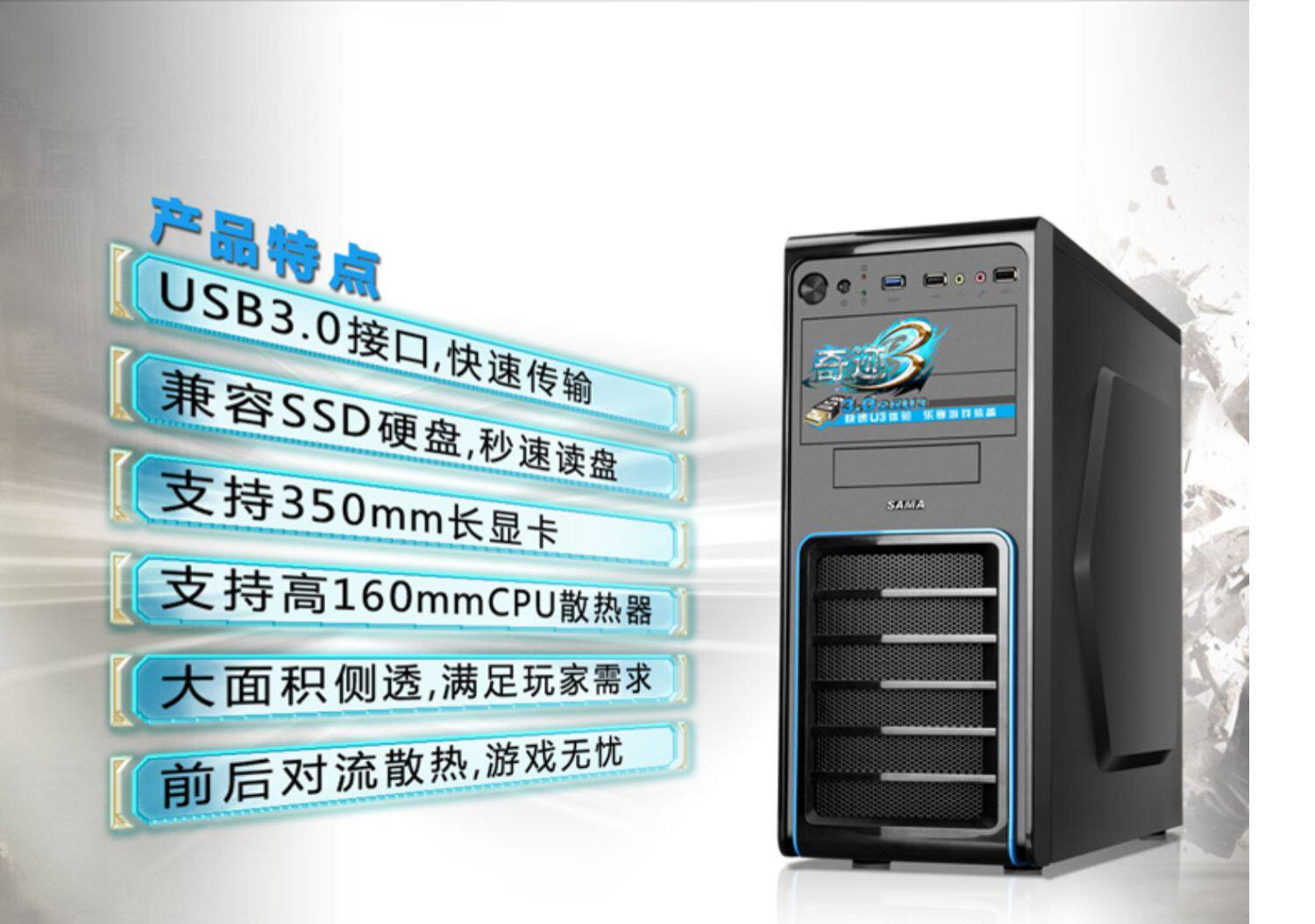 Miracle Miracle 3 Standard Edition Office E -Sports Game U3 Blanted Iron Network Computer Computer Chassis Host Host Desktop Chassis