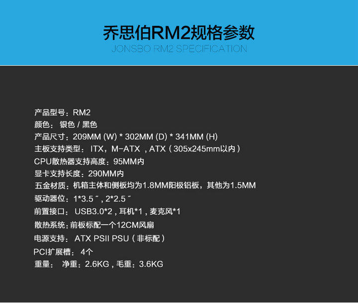 Jonsbo Qiaosbo RM2 Большой питание питания ATX Шасси простая панель модель таблицы все -алюминиевое охлаждение коробки