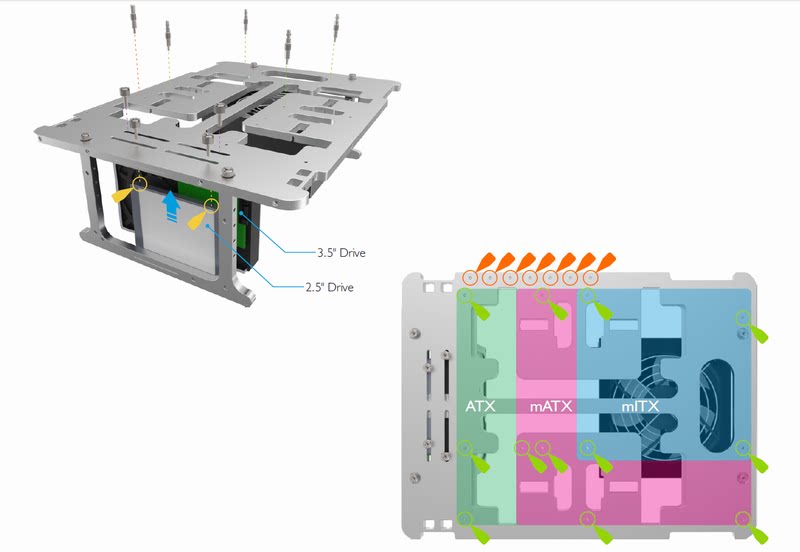 Количество поддерживаемых жестких дисков: до 2 x 2,5.″ or 2 x 3.5″При одновременной установке обратите внимание, что можно закрепить только одну толстую пластину (26 мм) и одну тонкую пластину (18 мм).