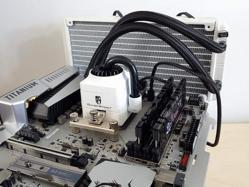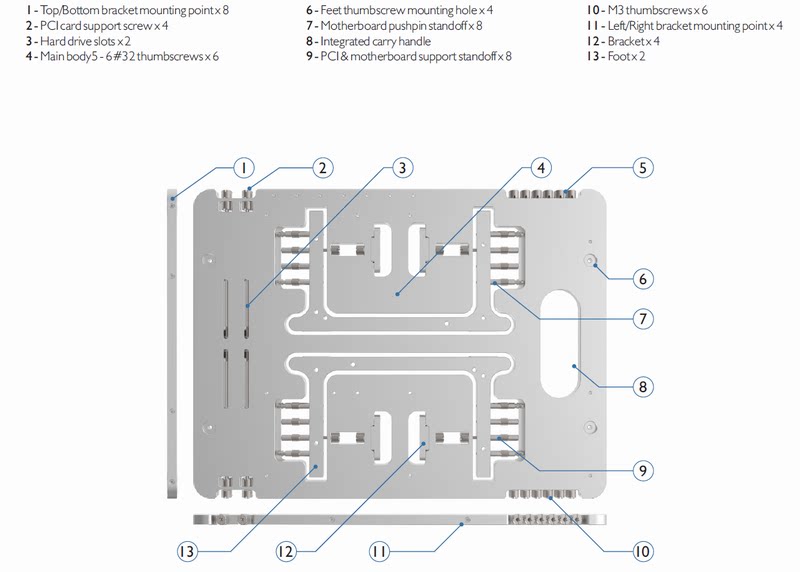Поддерживаемые характеристики радиаторов: 240, 140, 120, 92, 80 мм, макс. 5 кг. 360 Cold Row (обратите внимание на центр гравитации , например установка 360 градусов Холодный ряд Фиксированный с 4 фиксированными точками Рекомендуется установка дискретной видеокарты осуществлять противовес В противном случае это вызовет Нестабильный центр тяжести Нажмите на холодную сторону радиатора)