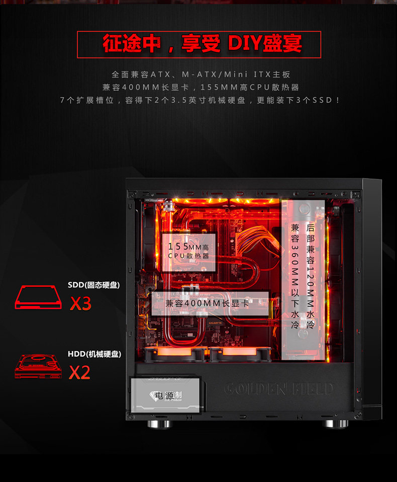 Jinhe Tianyu Z3 шасси настольный компьютерный компьютер -вода -охлаждаем