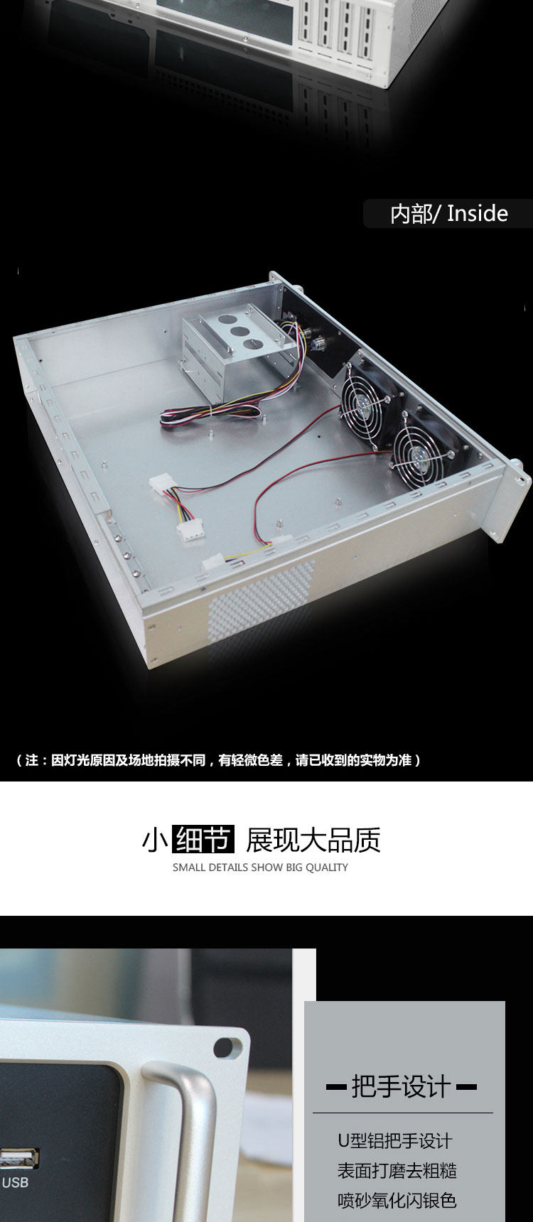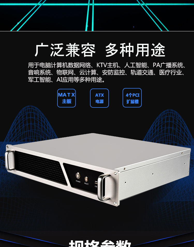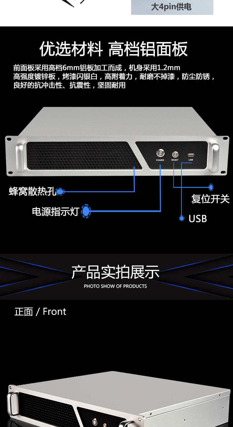 Компьютерная шасси 2U хост -оболочка высокая алюминиевая панель ATX Server Мониторинг питания Индивидуальный сервер управления рабочим
