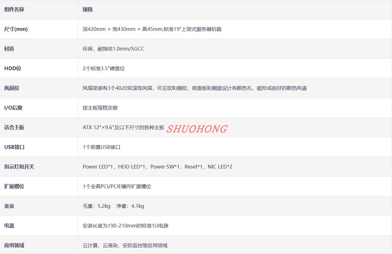 | Размер (мм) | 420 мм глубиной ×Шириной 430 мм ×Высота 45мм, стандарт 19"Установлен на полке корпус сервера |