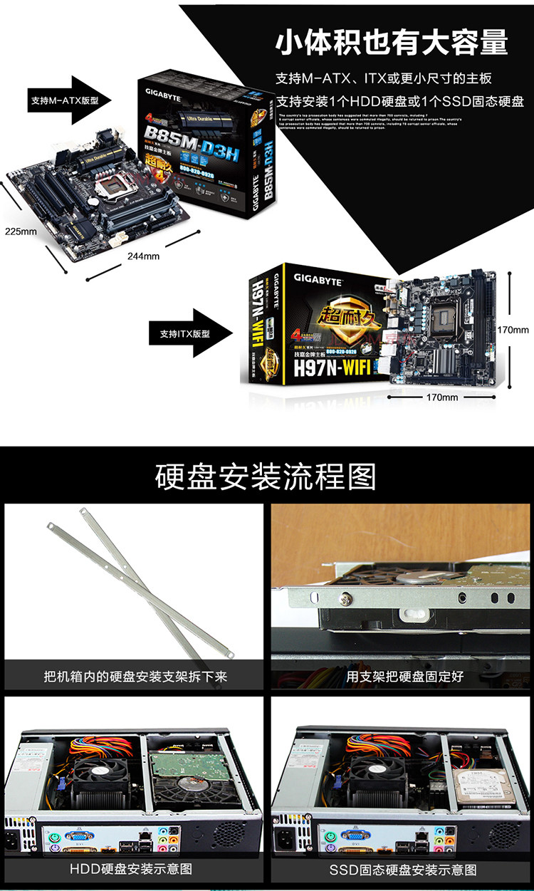 Пакет хоста компьютера 1: I3CPU3240+B75 Материнская плата +4G память+120GSSD Сплошное состояние+питание шасси+Фанат
