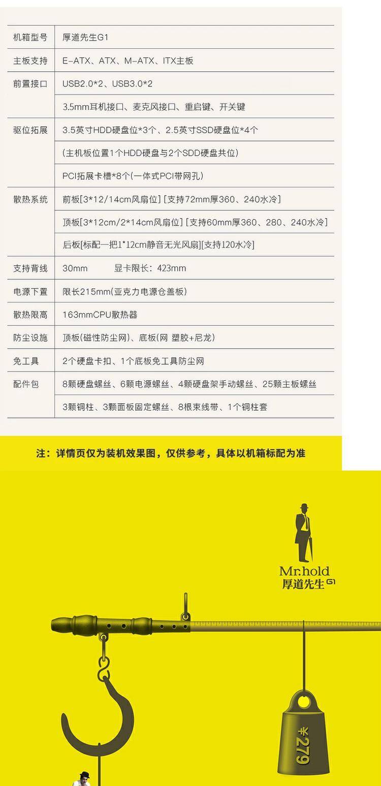 Г -н Хьюго G1 G1 High Tower Game Eatx Dual 360 Water -Coolled Desktop Creative Большой шасси под электрон