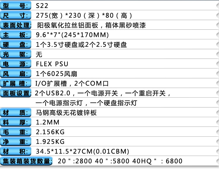 ITX Шасси Mini Embedded Small Case Flex Power Power Control Compant