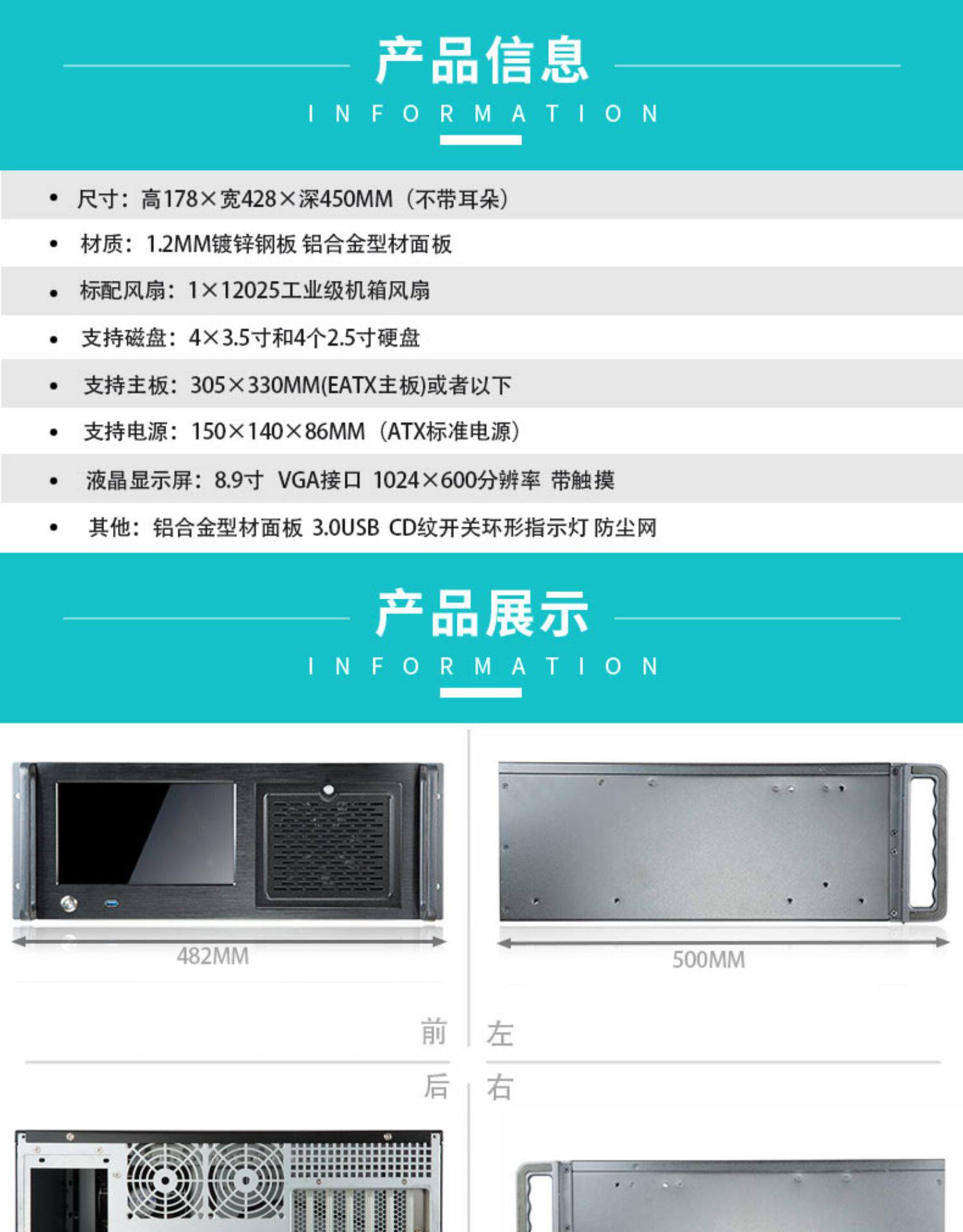 4U с сенсорным экраном на экране 4U Промышленное управление 9 -INCH LCD -RACK -тип рабочей станции Сервер управления рабочей станцией