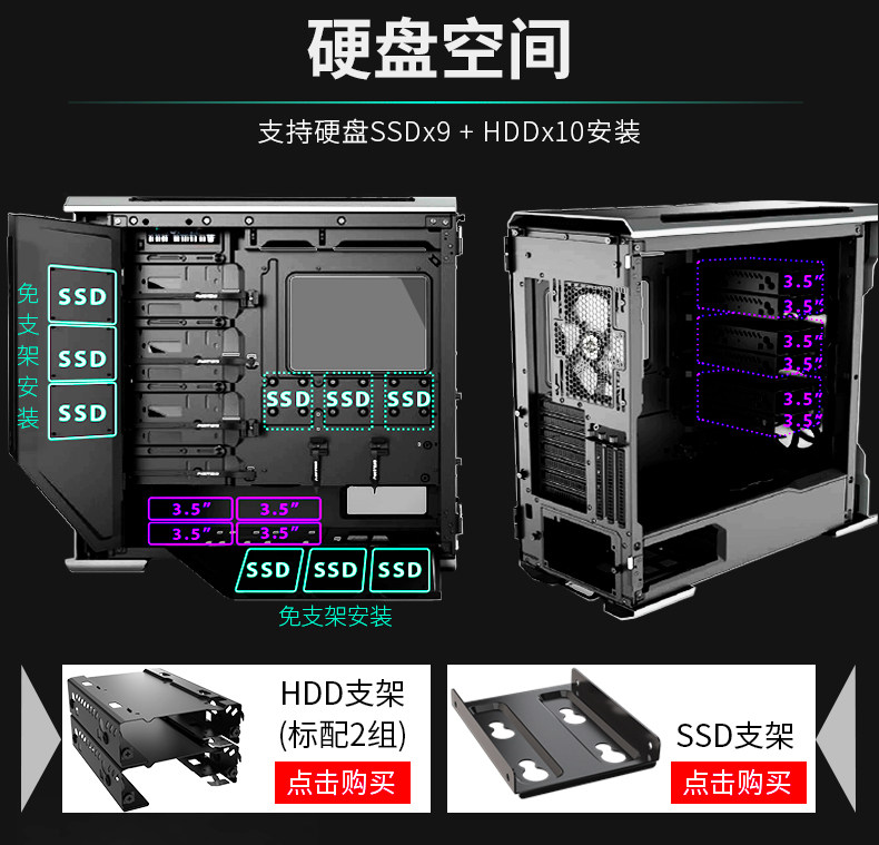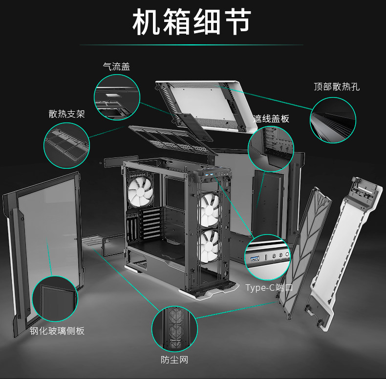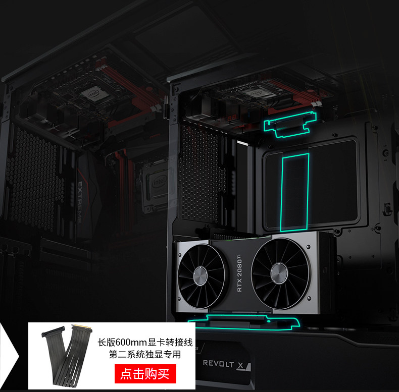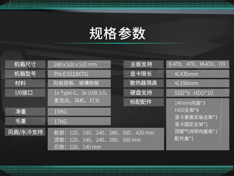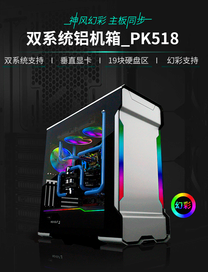 Phanteks Chaser evolv x 518 Двойной системный RGB С стеклянная стеклянная вода -охлаждаемая компьютерное алюминиевое шасси
