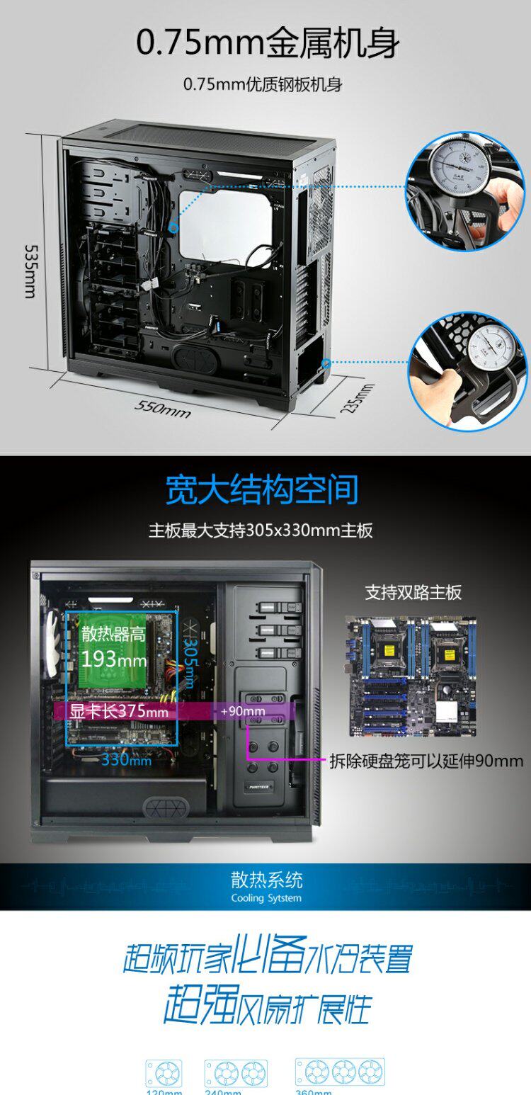 Phanteks Chaser 614p Полная башня EEB Двойная дорога Материнского Сервера Настольный компьютер Главный шасси