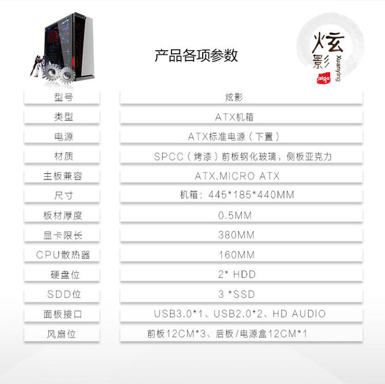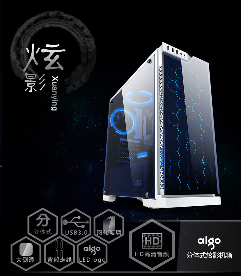 Aigo/爱国者 Hyunxing Studio -Style Computer Case Case Game Water -Colled Console Стеклянная передняя панель большая сторона