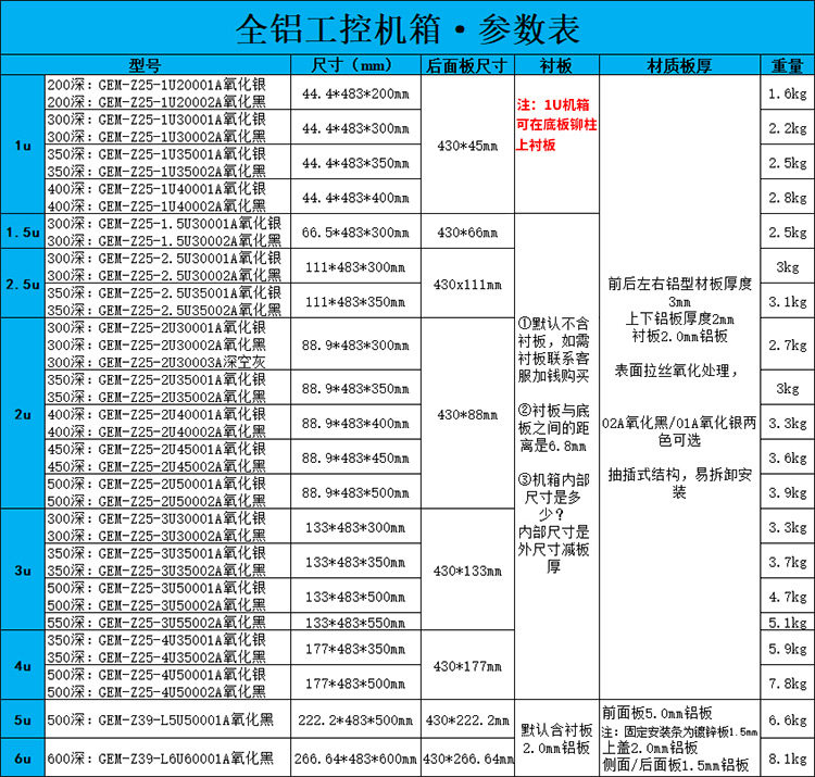 | Цвет: | 1у200 основное шасси полностью алюминиевое + без обшивки (черный оксид), 1у300 основное шасси полностью алюминиевое + без обшивки (черный оксид), 1у350 Основной корпус цельноалюминиевый + без подкладки (оксидированный черный), 1у400 основное шасси полностью алюминиевое + без обшивки (черный оксид), 1,5у300 основной корпус цельноалюминиевый + без подкладки (черный оксид), 2у300 основной корпус цельноалюминиевый + без подкладки (черный оксид), 2u300 Основной корпус полностью алюминиевый + накладная пластина в комплекте (черная оксидация), 2у300 основной корпус цельноалюминиевый + без подкладки (оксидирование серого звездного неба), 2у350 основной корпус цельноалюминиевый + без подкладки (черный оксид), 2у350 Основной корпус полностью алюминиевый + накладная пластина в комплекте (оксидирование в черный цвет), 2у400 основное шасси полностью алюминиевое + без обшивки (черный оксид), 2у450 основной корпус цельноалюминиевый + без подкладки (черный оксид), 2у500 основное шасси полностью алюминиевое + без обшивки (черный оксид), 2.5у300 основной корпус цельноалюминиевый + без подкладки (черный оксид), 2.5у350 основной корпус цельноалюминиевый + без подкладки (черный оксид), 3у300 основной корпус цельноалюминиевый + без подкладки (черный оксид), 3u300 Основной корпус полностью алюминиевый + накладная пластина в комплекте (оксидированное черное), 3у350 основной корпус цельноалюминиевый + без подкладки (черный оксид), 3u350 Полностью алюминиевый основной кейс + вкладыш в комплекте (черный оксидированный), 3у500 основное шасси полностью алюминиевое + без обшивки (черный оксид), 3у550 Основной корпус цельноалюминиевый + без подкладки (оксидированный черный), 3u550 Основной корпус полностью алюминиевый + накладная пластина в комплекте (черная оксидация), 4у350 основное шасси полностью алюминиевое + без обшивки (черный оксид), 4u350 Основной корпус полностью алюминиевый + накладная пластина в комплекте (черная оксидация), 4у500 основное шасси полностью алюминиевое + без обшивки (черный оксид), 4u500 Основной корпус полностью алюминиевый + накладная пластина в комплекте (оксидированное черное), 5у500 основной корпус цельноалюминиевый непрофильная модель (включая накладку+ручку) (оксидированное черное), 6у600 основной корпус цельноалюминиевый непрофильная модель (включая накладку+ручку) (оксидированное черное), 1у200 основное шасси полностью алюминиевое + без облицовки (оксид серебра), 1у300 основной корпус цельноалюминиевый + без накладки (оксид серебра), 1у350 основной корпус цельноалюминиевый + без накладки (оксид серебра), 1у400 основное шасси полностью алюминиевое + без облицовки (оксид серебра), 1,5у300 основной корпус цельноалюминиевый + без накладки (оксид серебра), 2у300 основной корпус цельноалюминиевый + без накладки (оксид серебра), 2у300 основной корпус полностью алюминиевый + включая облицовочную пластину (оксид серебра), 2у350 основное шасси полностью алюминиевое + включая накладку (оксид серебра), 2у350 основной корпус цельноалюминиевый + без накладки (оксид серебра), 2у400 основное шасси полностью алюминиевое + без облицовки (оксид серебра), 2у450 основной корпус цельноалюминиевый + без накладки (оксид серебра), 2у500 основной корпус цельноалюминиевый + без накладки (оксид серебра), 2.5у300 основной корпус цельноалюминиевый + без накладки (оксид серебра), Основной корпус 2,5у350 цельноалюминиевый + без накладки (оксид 