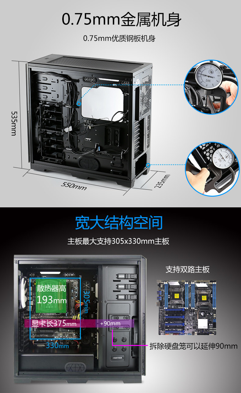 Phanteks Chaser 614pc Полная башня EEB Двойной дорогой сервер материнской панели настольный компьютер Главный шасси