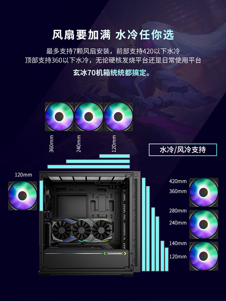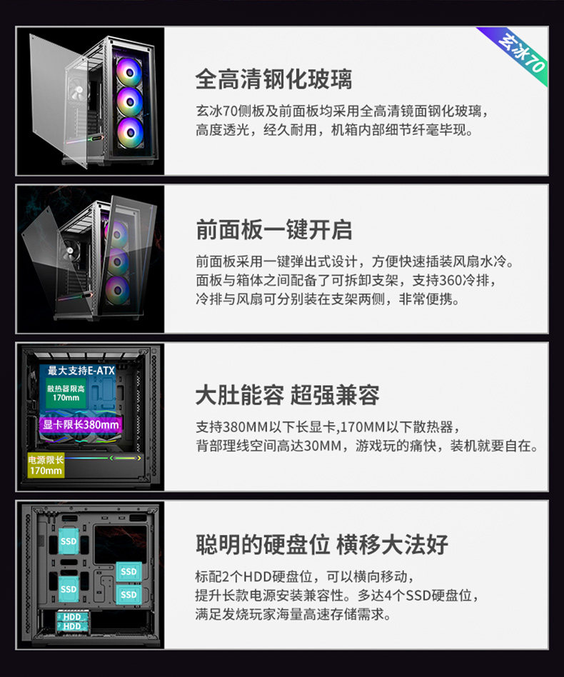 Kyushu Fengshen Xuanbing 70 Computer Caue Case -Cule -Cool -Cool -Case Gaming Case (стеклянная панель)
