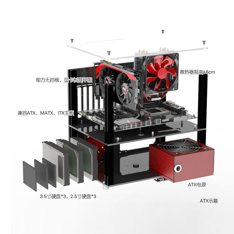 [Старые модели] Венера двойной слой акрилового компьютера, открытый ATX индивидуальный странный рам