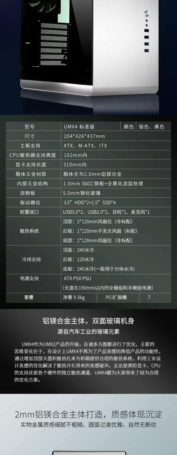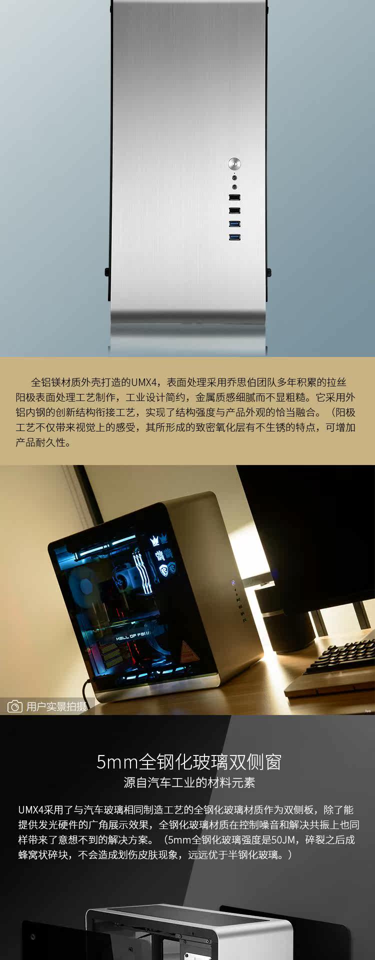 Qiaosbo umx4 оптический эффект эффект RGB Game Chassis atx All -Aluminum membered стекло прозрачный компьютерный планшет