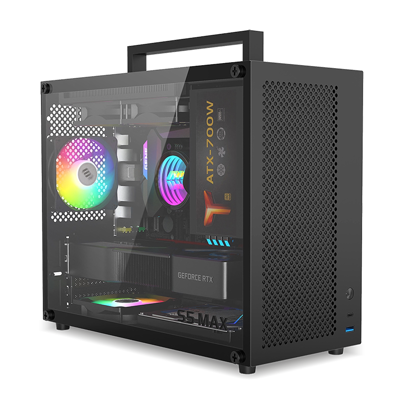 Fish Nest S5max Host Case Case Стекло прозрачный компьютер на рабочем столе портативный настольный компьютер M-ATX вентиляция и охлаждение небольшого шкафа хоста