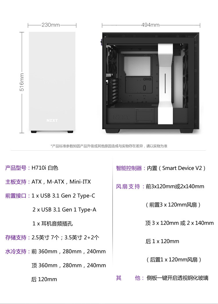 Enjie nzxt h710/h7 поток в корпусе ATX вода -охлаждаемая темпераментная боковая бока прозрачная консольная коробка
