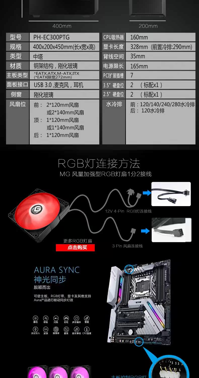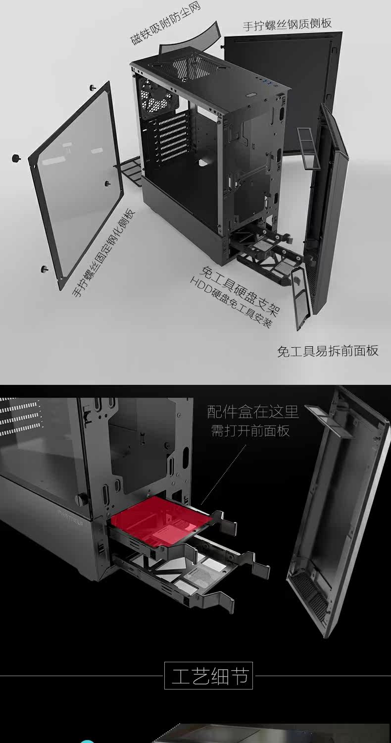 Phanteks Chaser P300 RGB Стаканная боковая сторона Проницаемая водопроводная консольная стола для компьютерной консоли