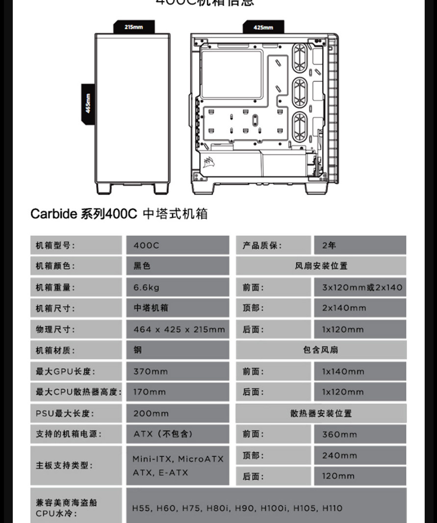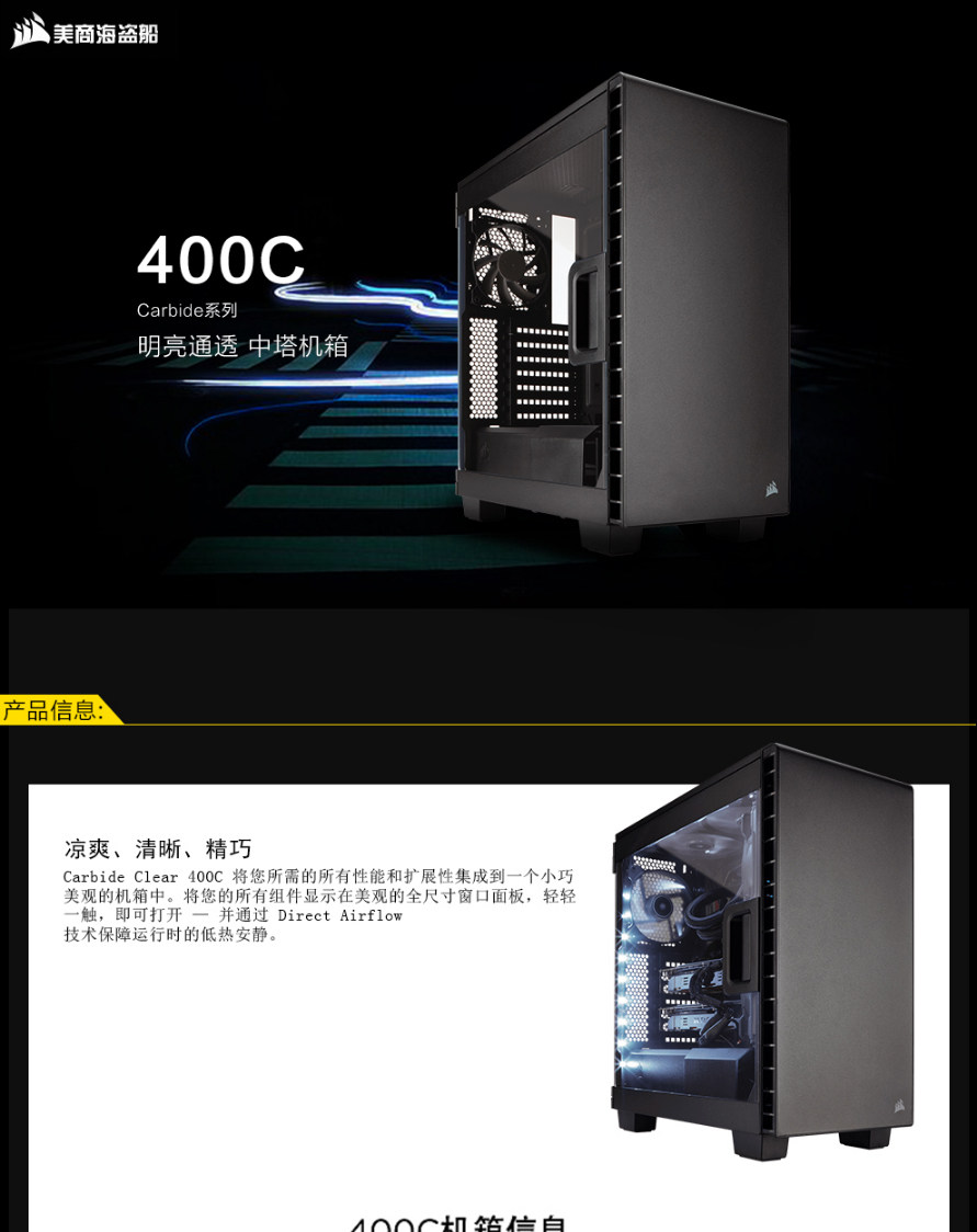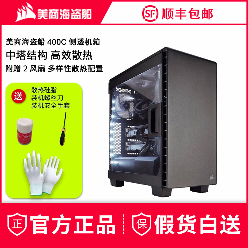 Американский бизнес -пиратский корабль (Uscorsair 400C Средняя сторона прозрачного хоста, охлаждающий компьютер на рабочем столе.