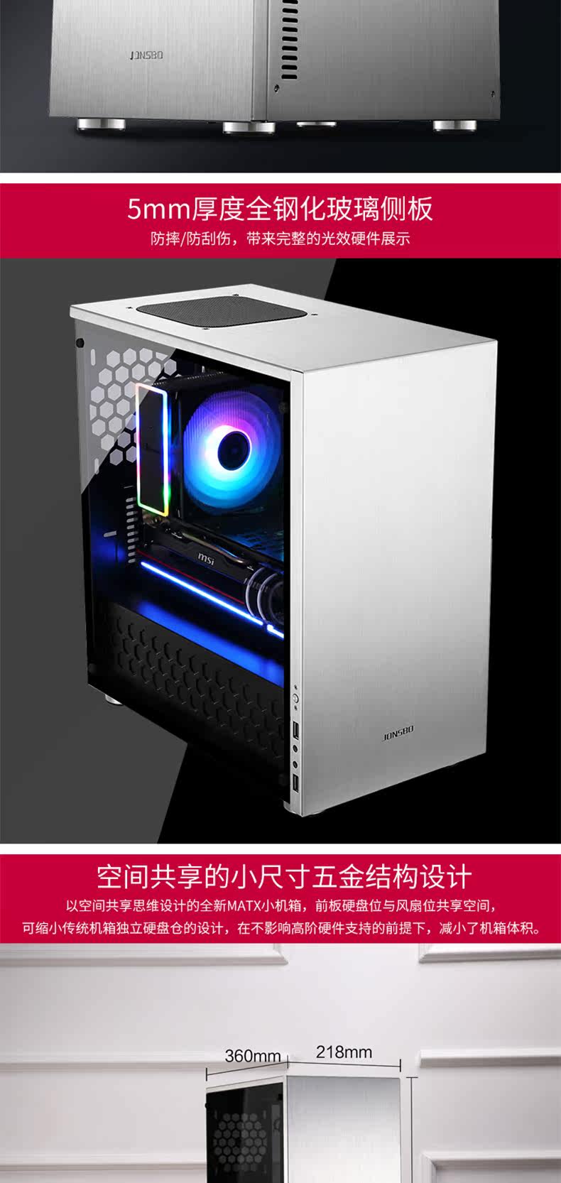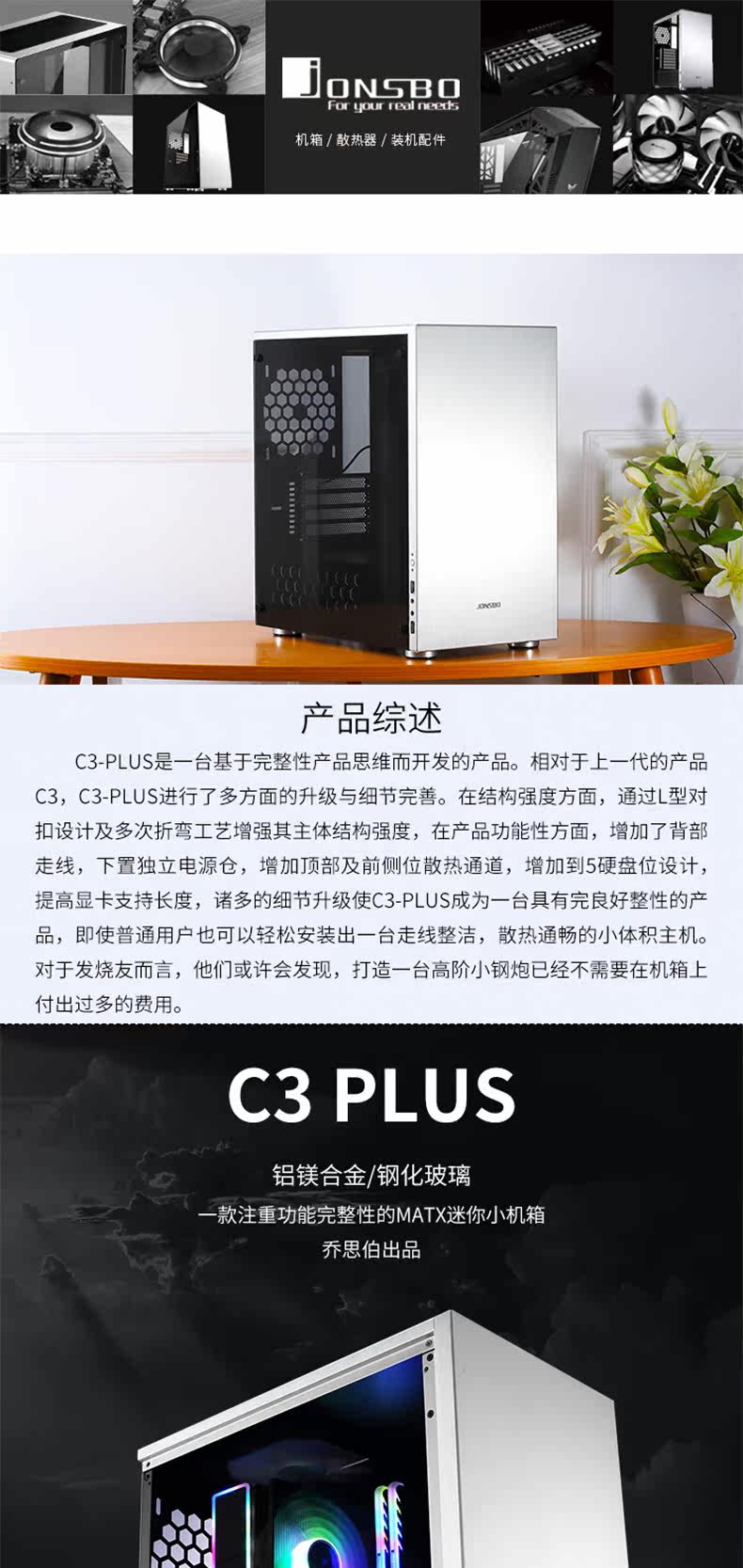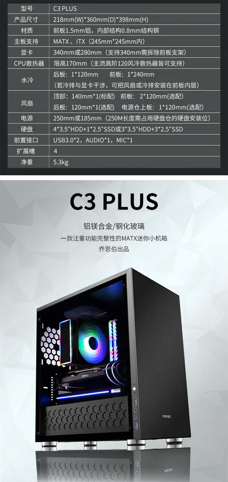 Jonsbo/Qiaosbo C3-Plus All-алюминиевая стеклянная боковая сторона прозрачная шасси поддерживает Matx Motherboard Большая графическая карта