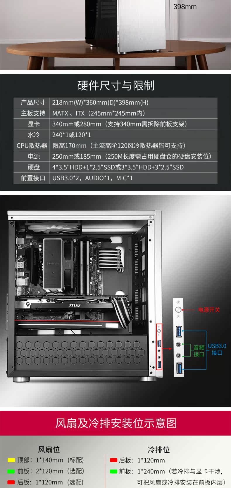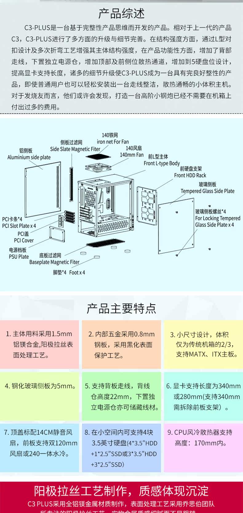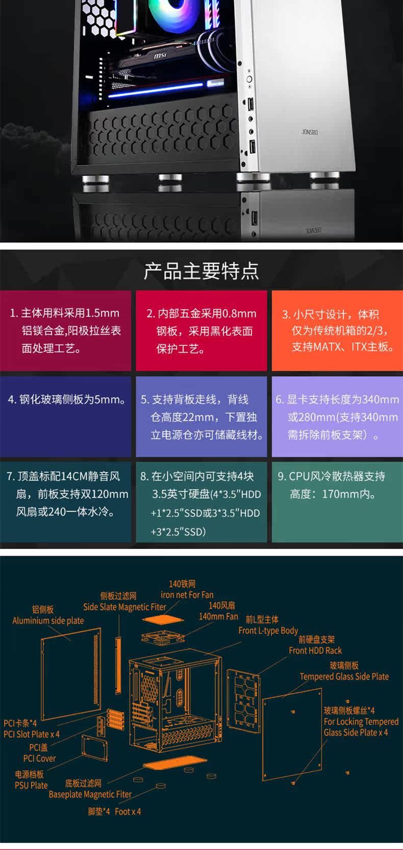 Jonsbo/Qiaosbo C3-Plus All-алюминиевая стеклянная боковая сторона прозрачная шасси поддерживает Matx Motherboard Большая графическая карта