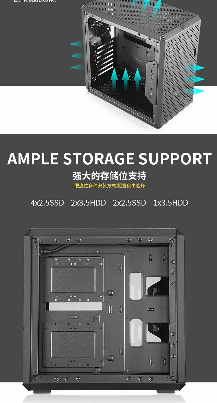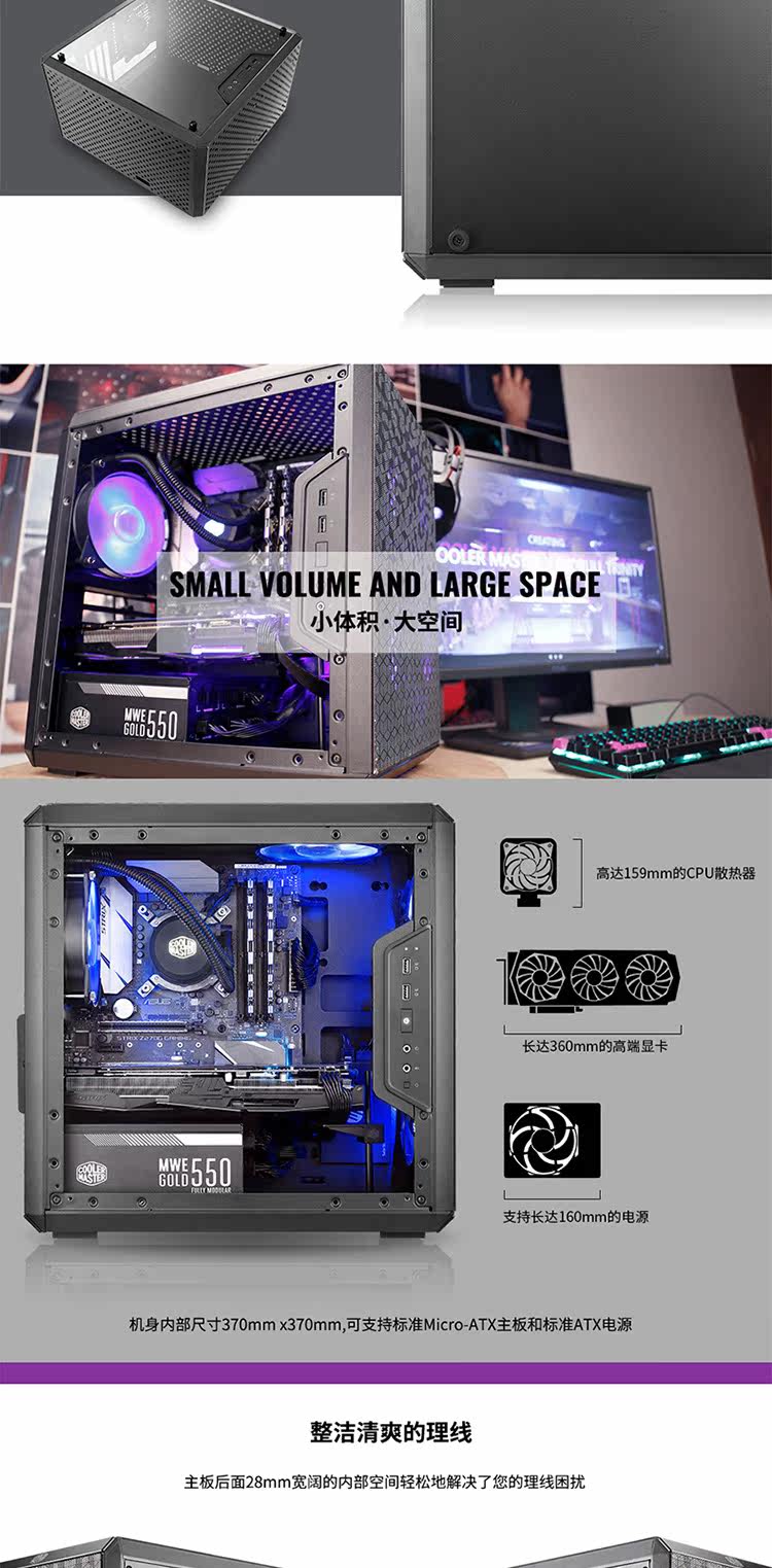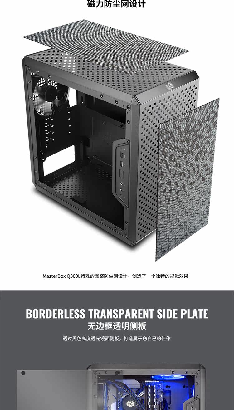 Cool Supreme Q300L Q500L Поддерживает ATX M-ATX Transparent Bide Poard Plaint Type Check Check New.