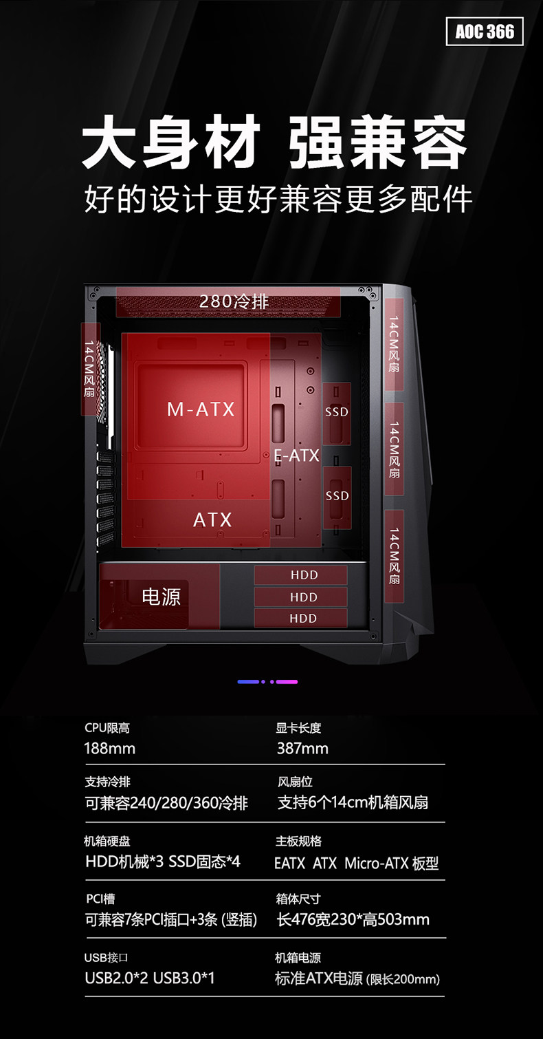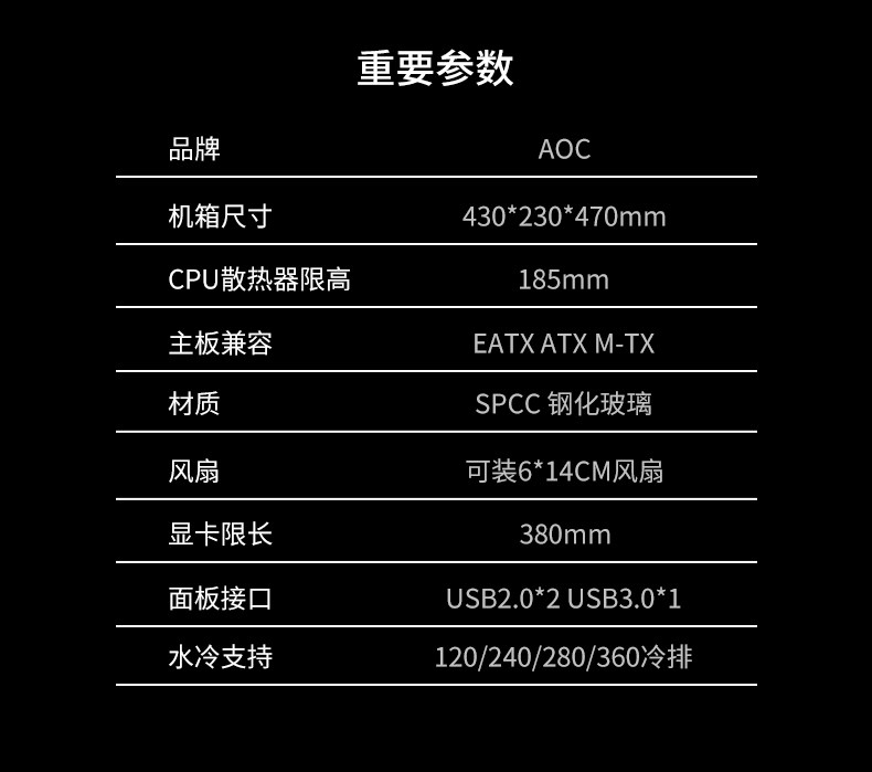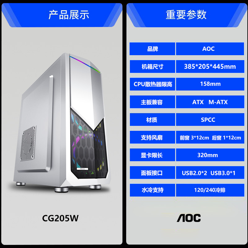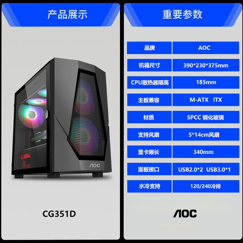 AOC CG366 Компьютер пустое корпус водяной охлаждение водяной охлаждение ITX/M -TX Материнская плата E -Sports Game Transparent DIY сборка