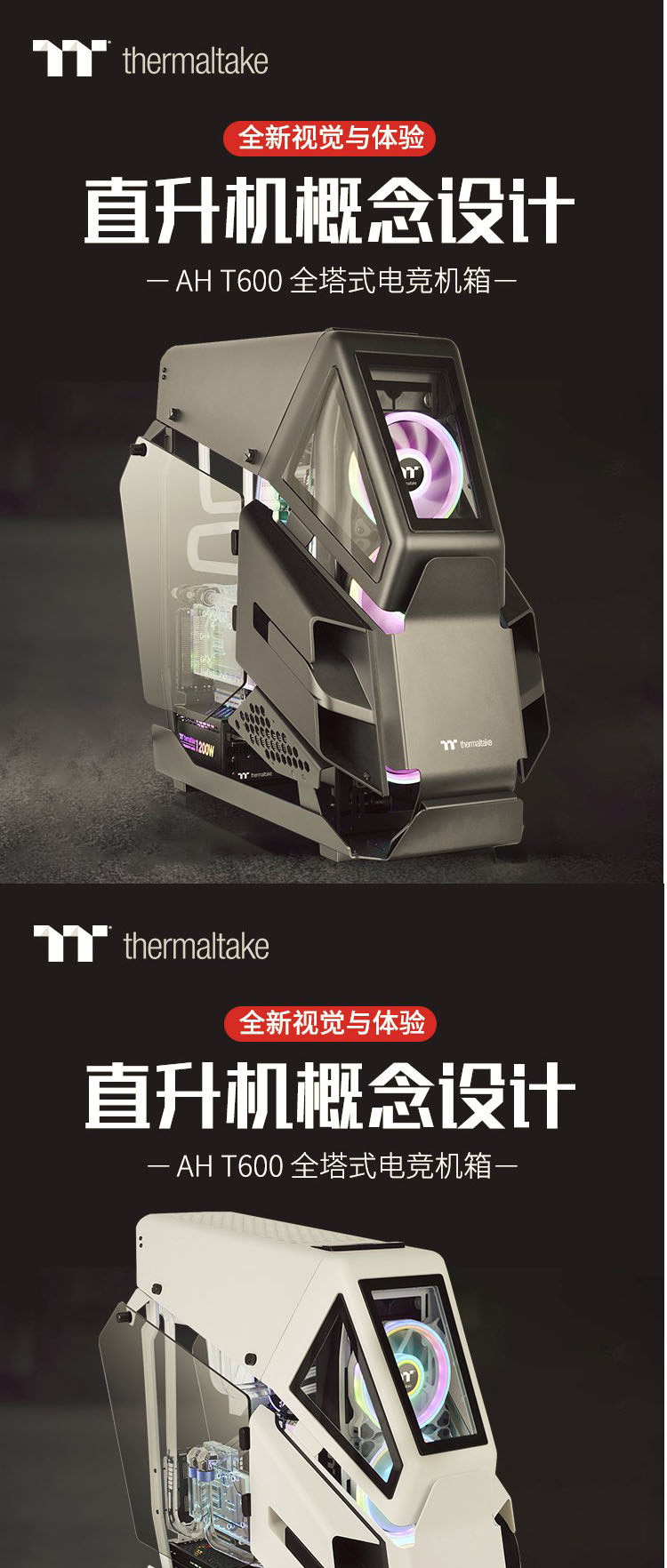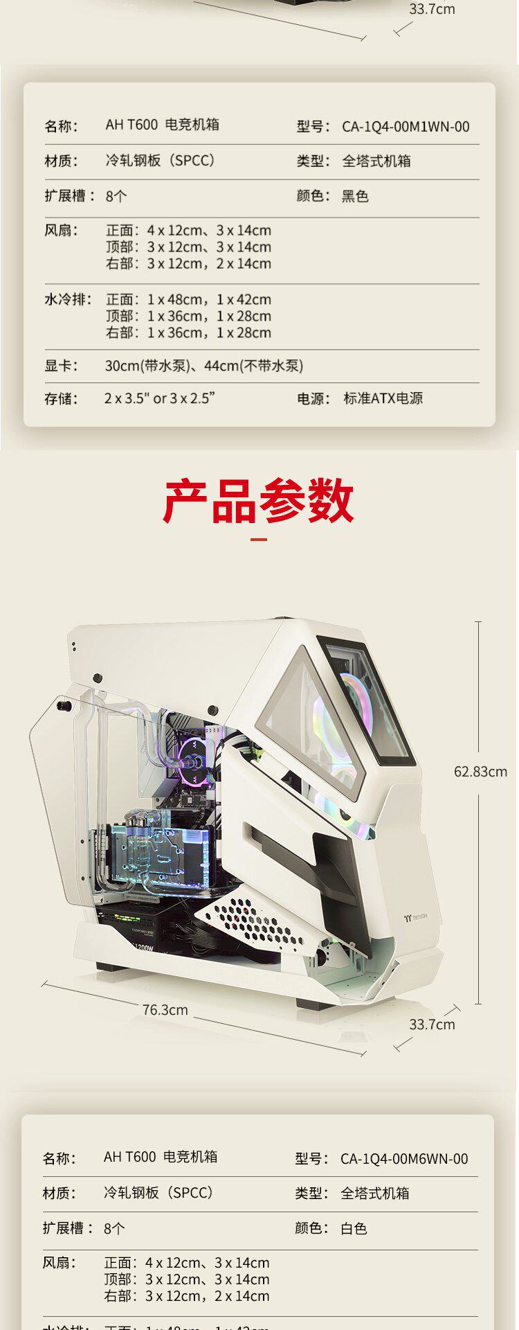 TT AH T600 Computer Maincase Casino Casino Midtaphical Side Pour Игра на индивидуальная вода холодный белый/черный